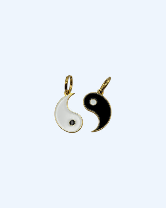 BRINCOS ARGOLA YIN YANG EM AÇO INOXIDÁVEL