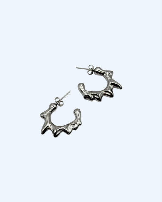 BRINCOS MOON MELT PRATEADOS EM AÇO INOXIDÁVEL