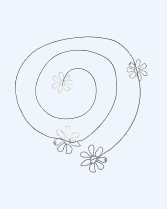 COLAR CORRENTE COM FLORES em aço inoxidável