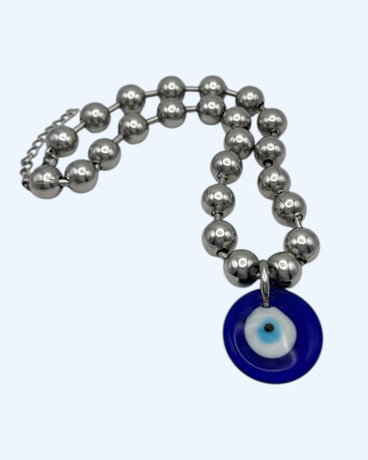 COLAR EM AÇO INOXIDÁVEL COM MEDALHÃO OLHO GREGO