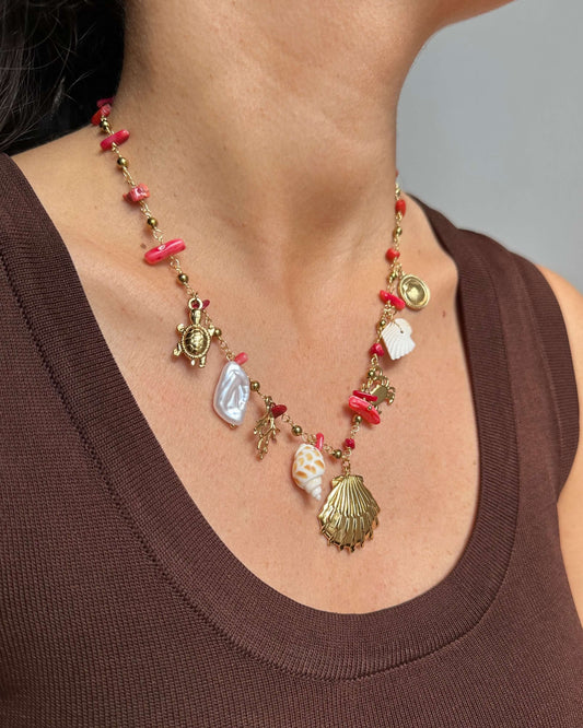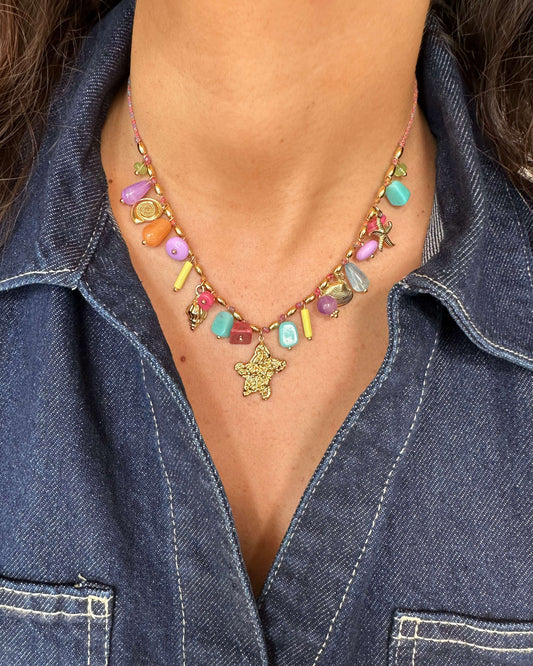 COLAR COLORIDO COM BÚZIOS E PINGENTES TROPICAIS
