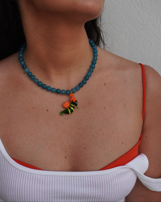 COLAR BOHO COM PEDRAS COLORIDAS E PINGENTES DO MAR