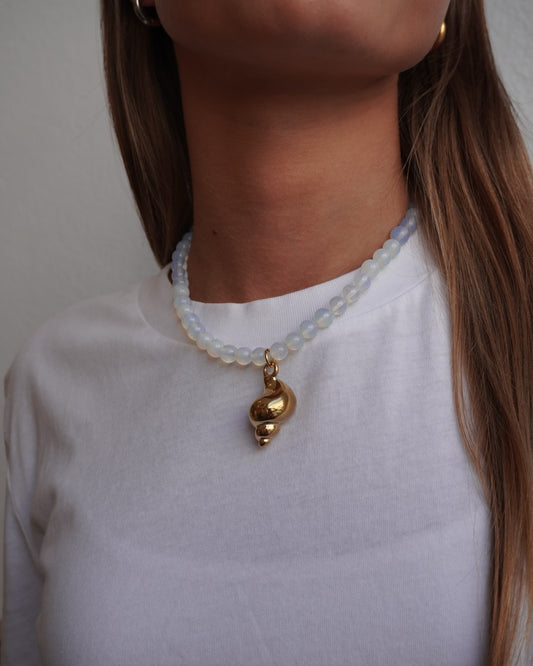 COLAR EM AÇO COM BÚZIO, PÉROLAS E ESTRELAS-DO-MAR