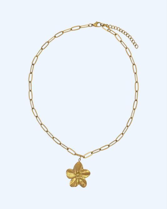 COLAR EM AÇO COM FLOR EM DOURADO OU PRATEADO