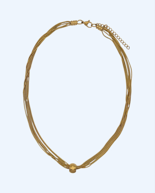 COLAR DOURADO COM CORDÕES E ESFERA EM AÇO INOXIDÁVEL