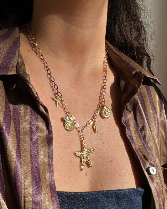 COLAR BOLD COM ESTRELA DO MAR E TEXTURAS NATURAIS