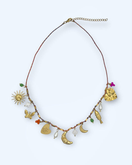 COLAR COLORIDO COM PINGENTES CÓSMICOS E VIBES BOÉMIAS