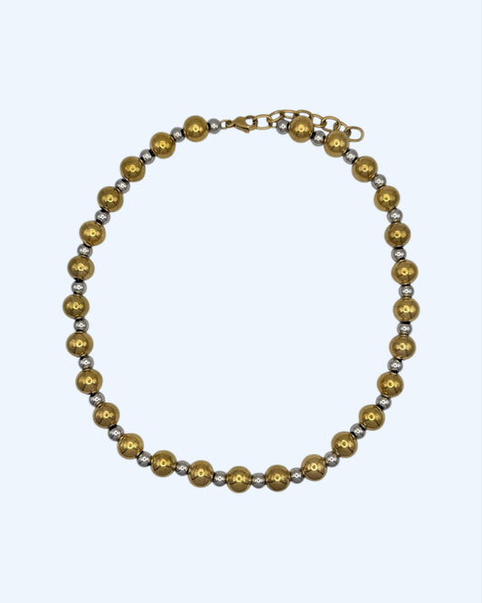 COLAR ESFERAS DOURADAS E PRATEADAS EM AÇO INOXIDÁVEL