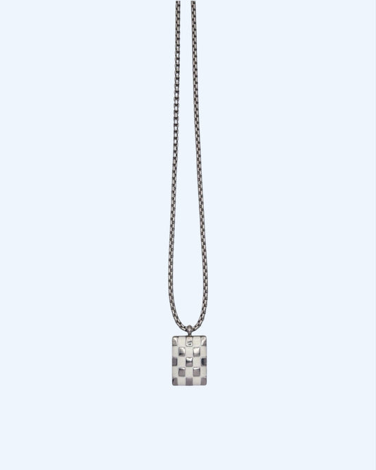 COLAR BOX CHAIN MEDALHA XADREZ EM AÇO