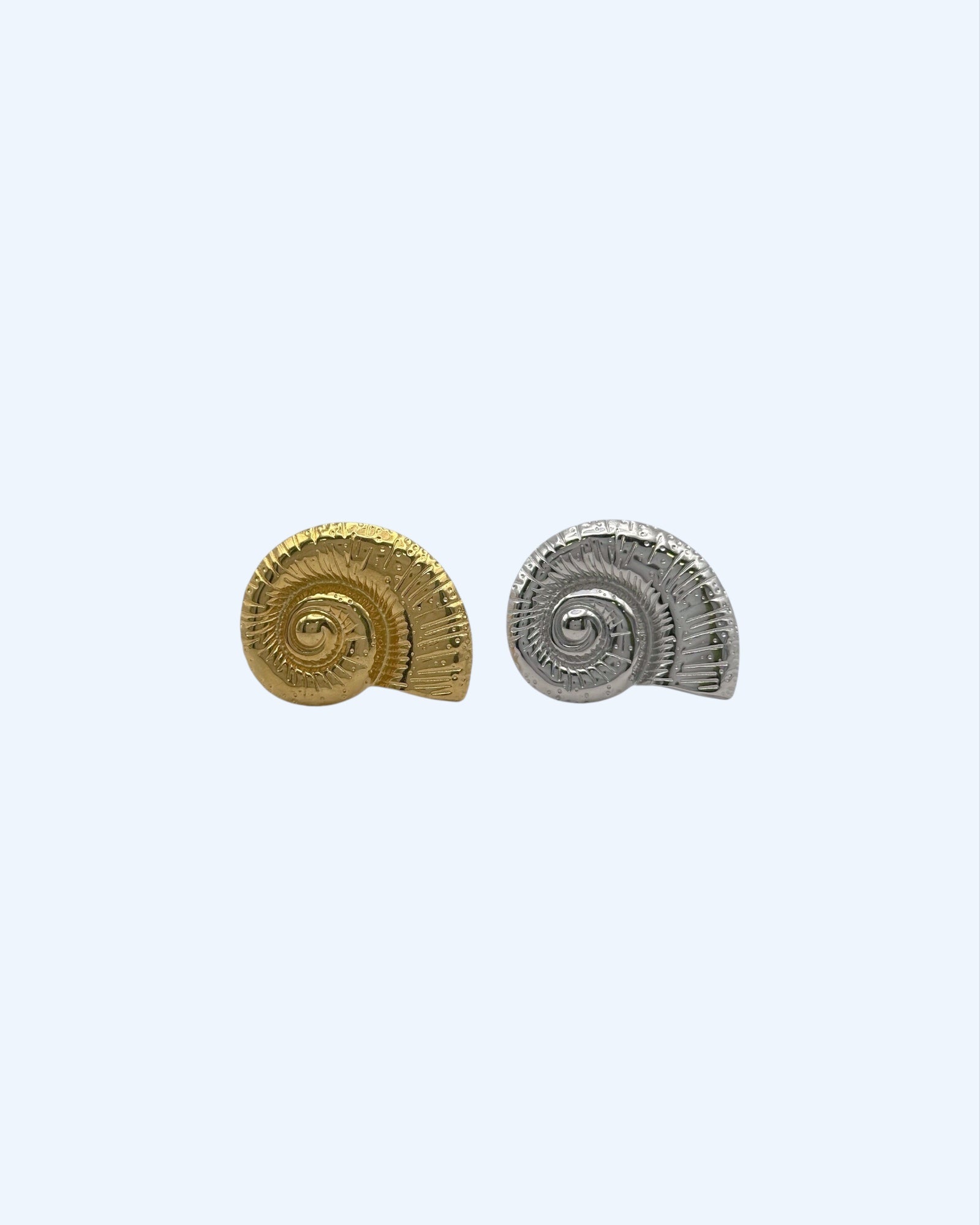 Impacto total! Este anel oversized com um caracol do mar bold é o toque edgy que faltava. Em aço inoxidável e disponível em dourado e prateado.