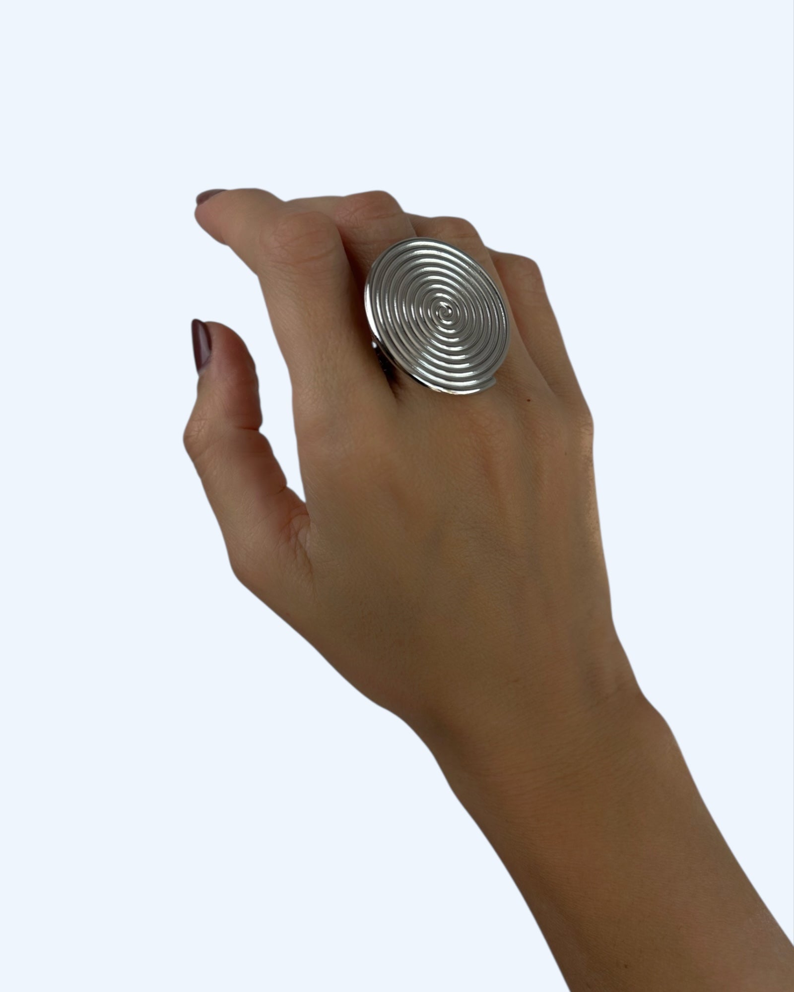 Statement e sofisticado. O anel com design espiralado maxi é feito em aço inoxidável. Um toque moderno e bold em dourado e/ou prateado.