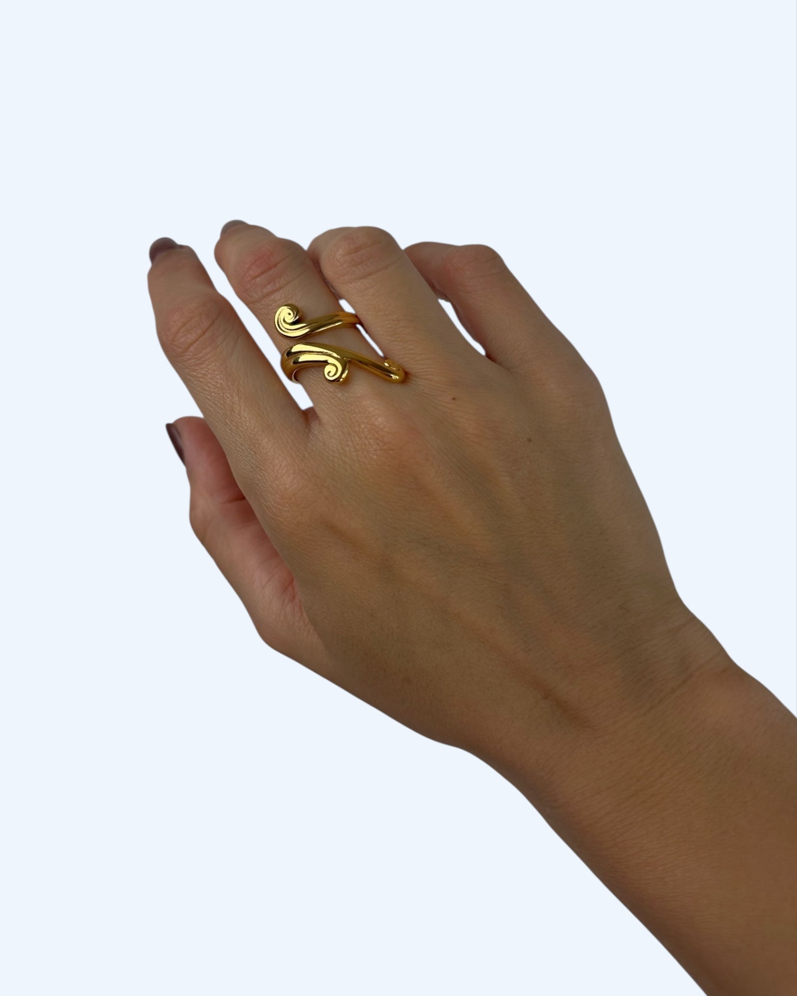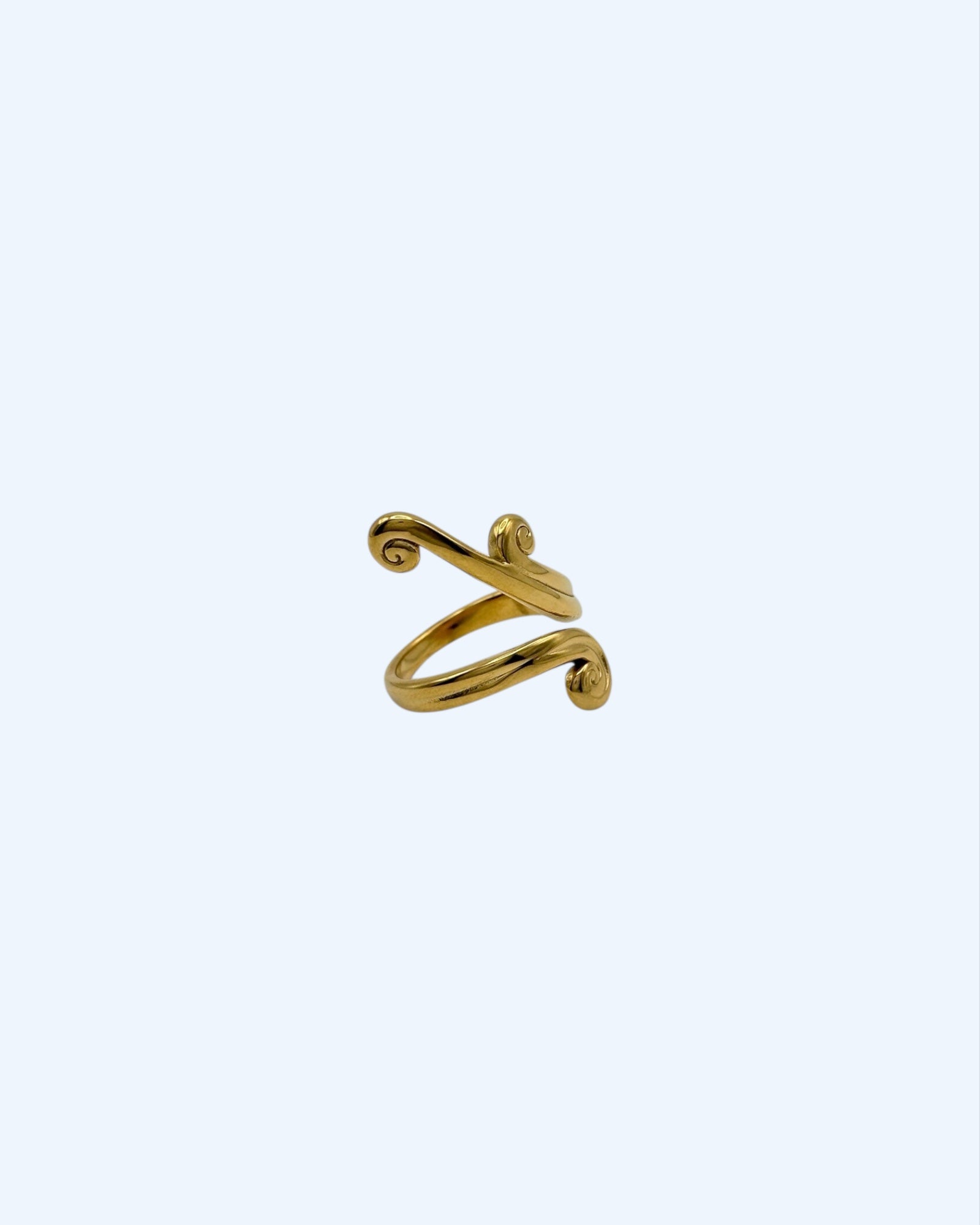 Design orgânico e cheio de movimento! O anel trepadeira dourado em aço é aquele twist elegante e edgy para um look cool & fluido.