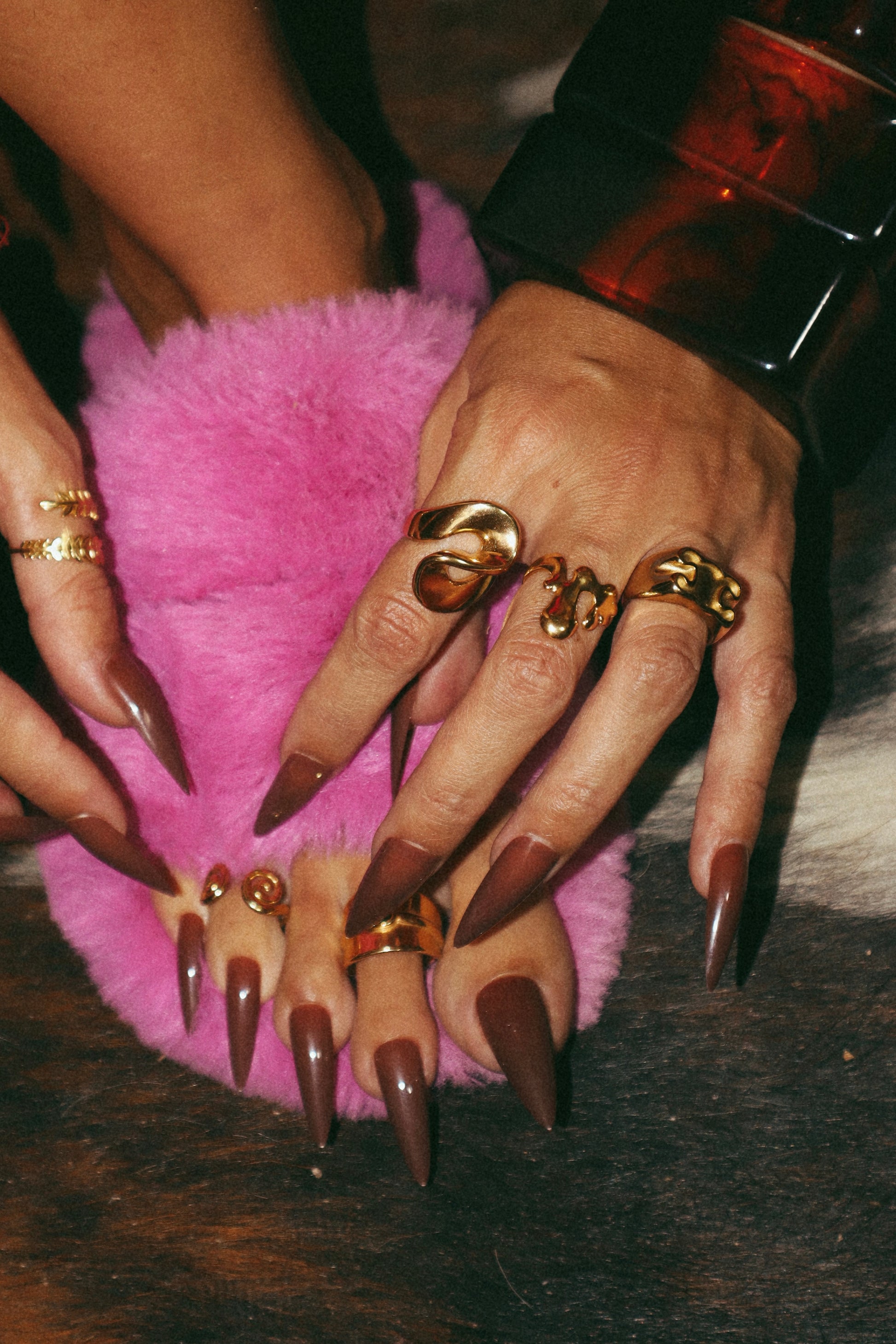 Uma ode às curvas. Este anel em aço inoxidável está disponível em dourado e prateado.
