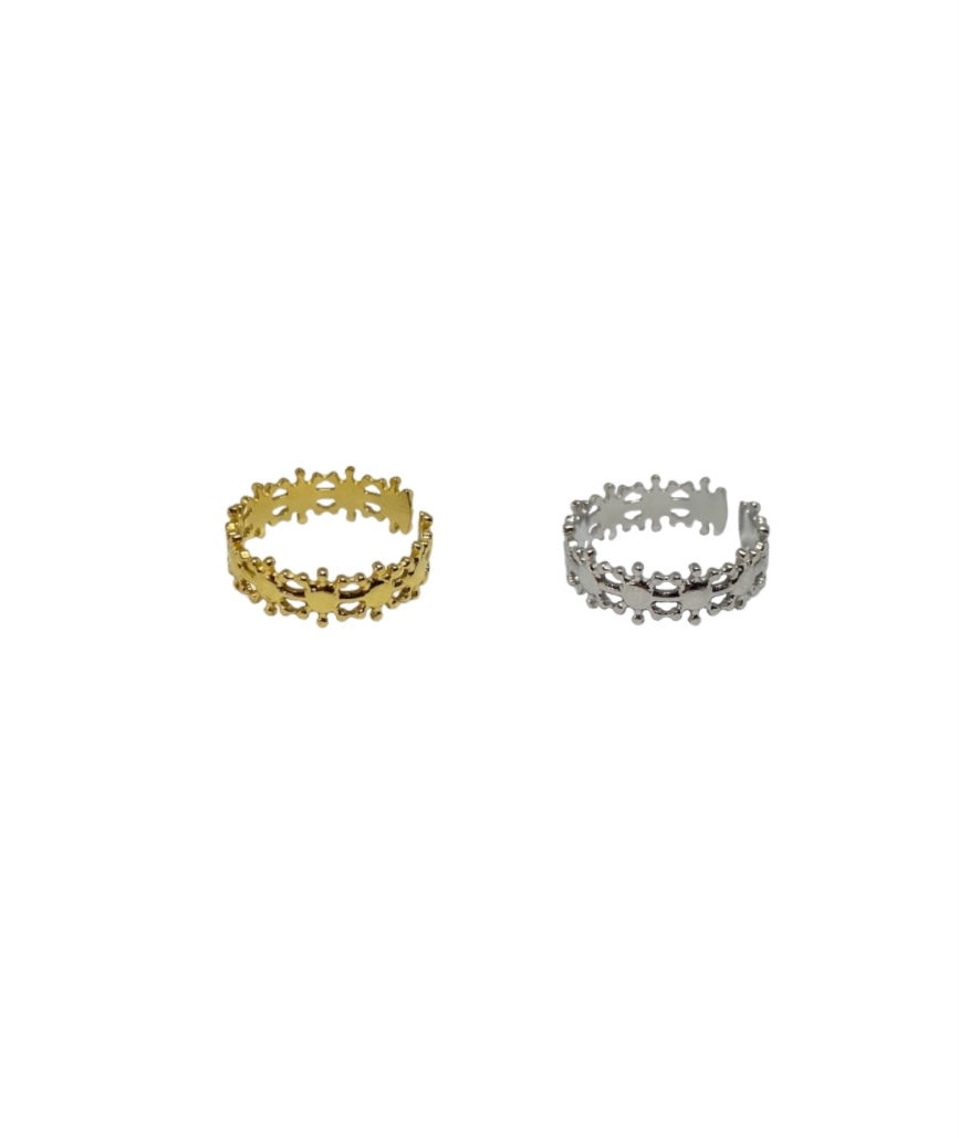 Anel ajustável em Aço Inoxidável, disponível em dourado e prateado.
