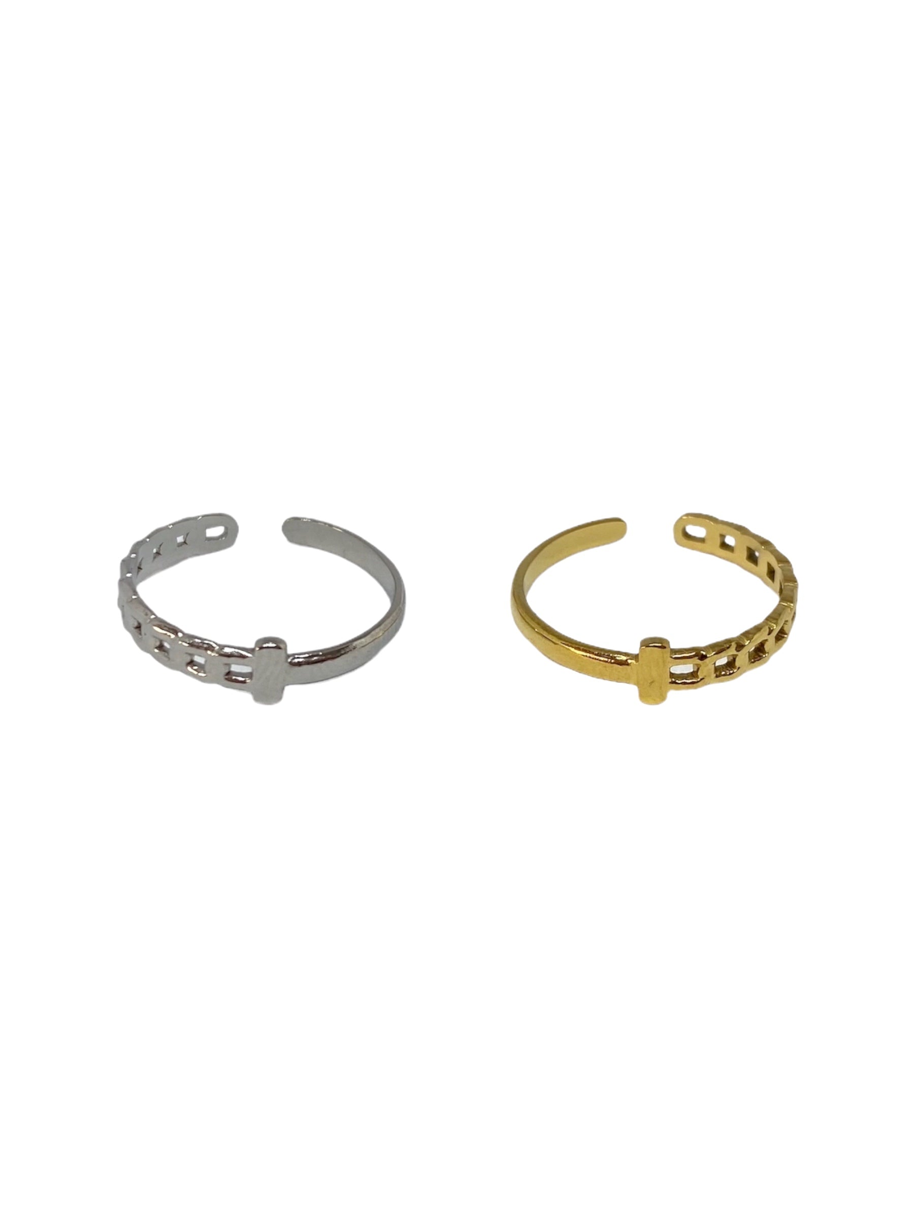 Anel Budapeste em aço inoxidável. É ajustável e está disponível em dourado e prateado.