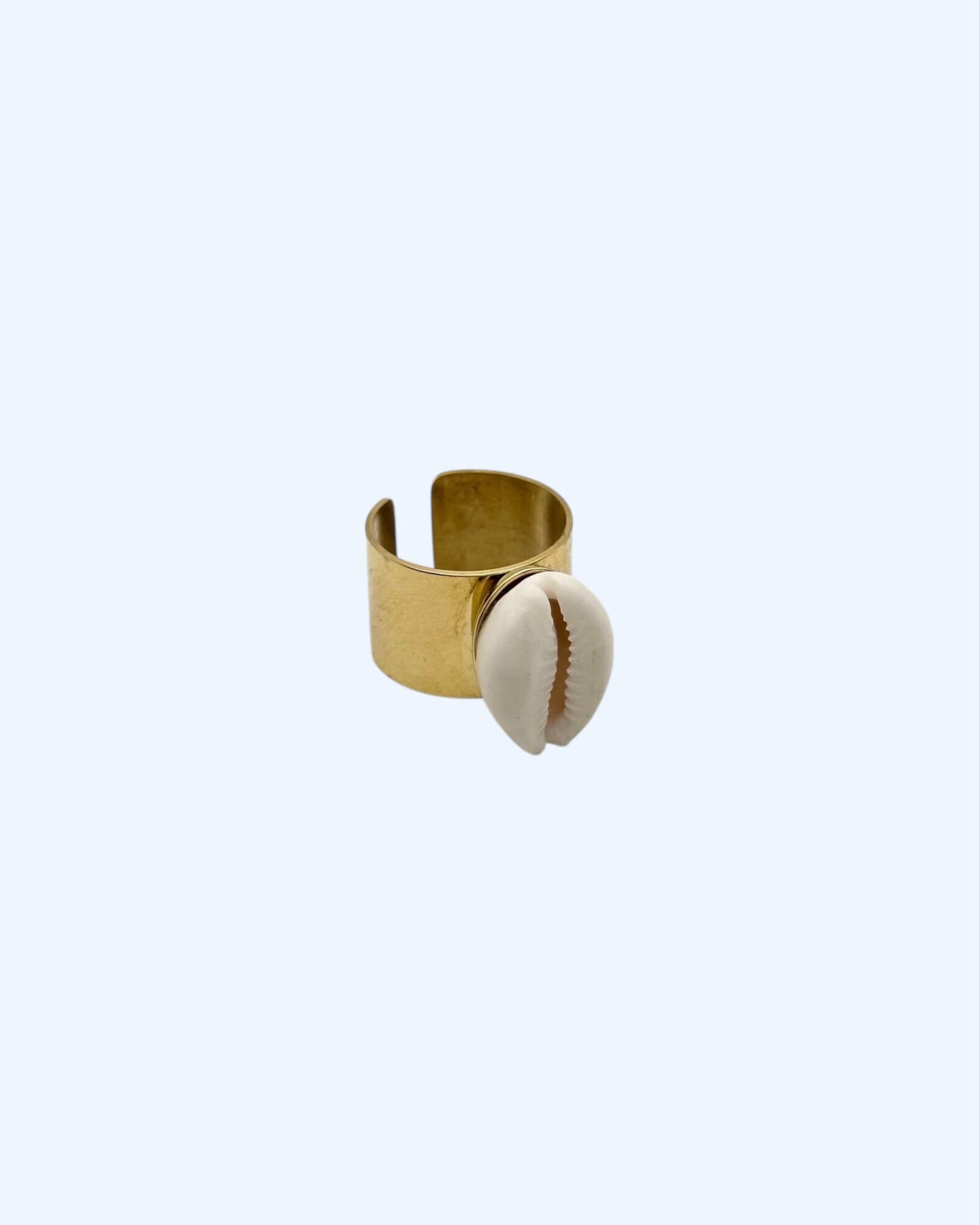 Autentico e irresistível! Anel dourado com búzio natural em aço inoxidável.