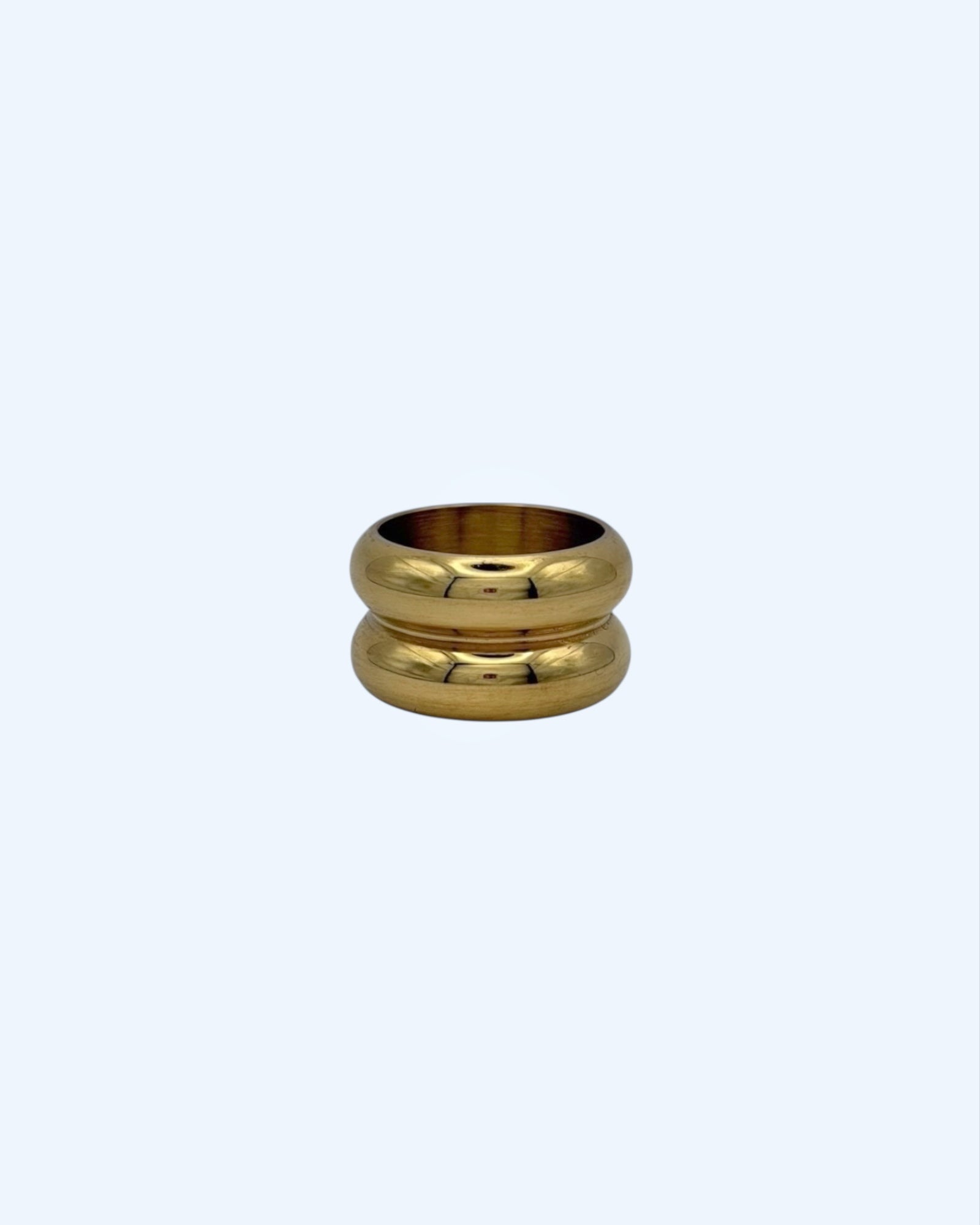ANEL ALIANÇA DUPLA DOURADO EM AÇO INOXIDÁVEL