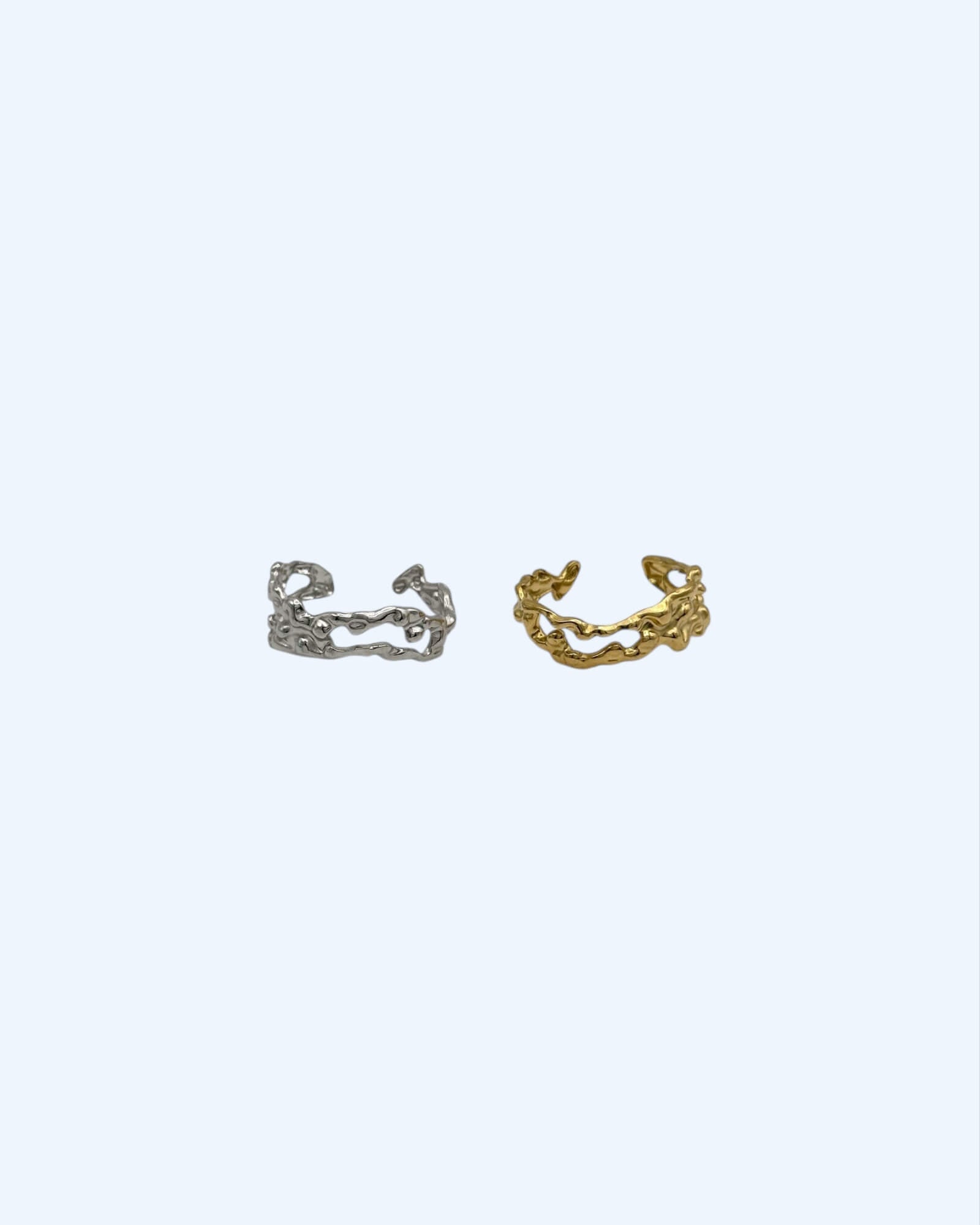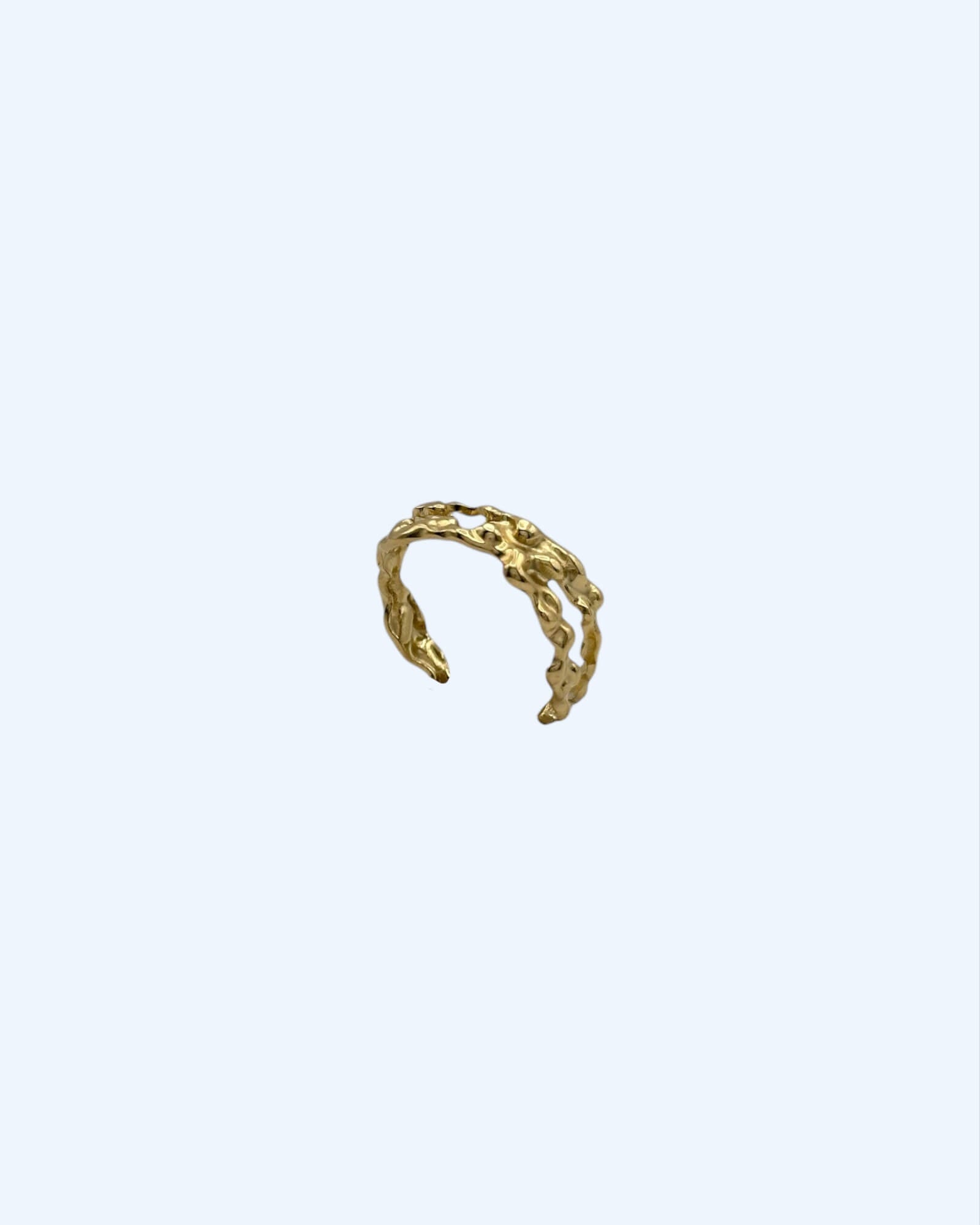 Com design orgânico e vibes minimal marinhas, este anel com textura coral é ajustável, leve e feito em aço inoxidável. Está disponível em dourado e prateado.