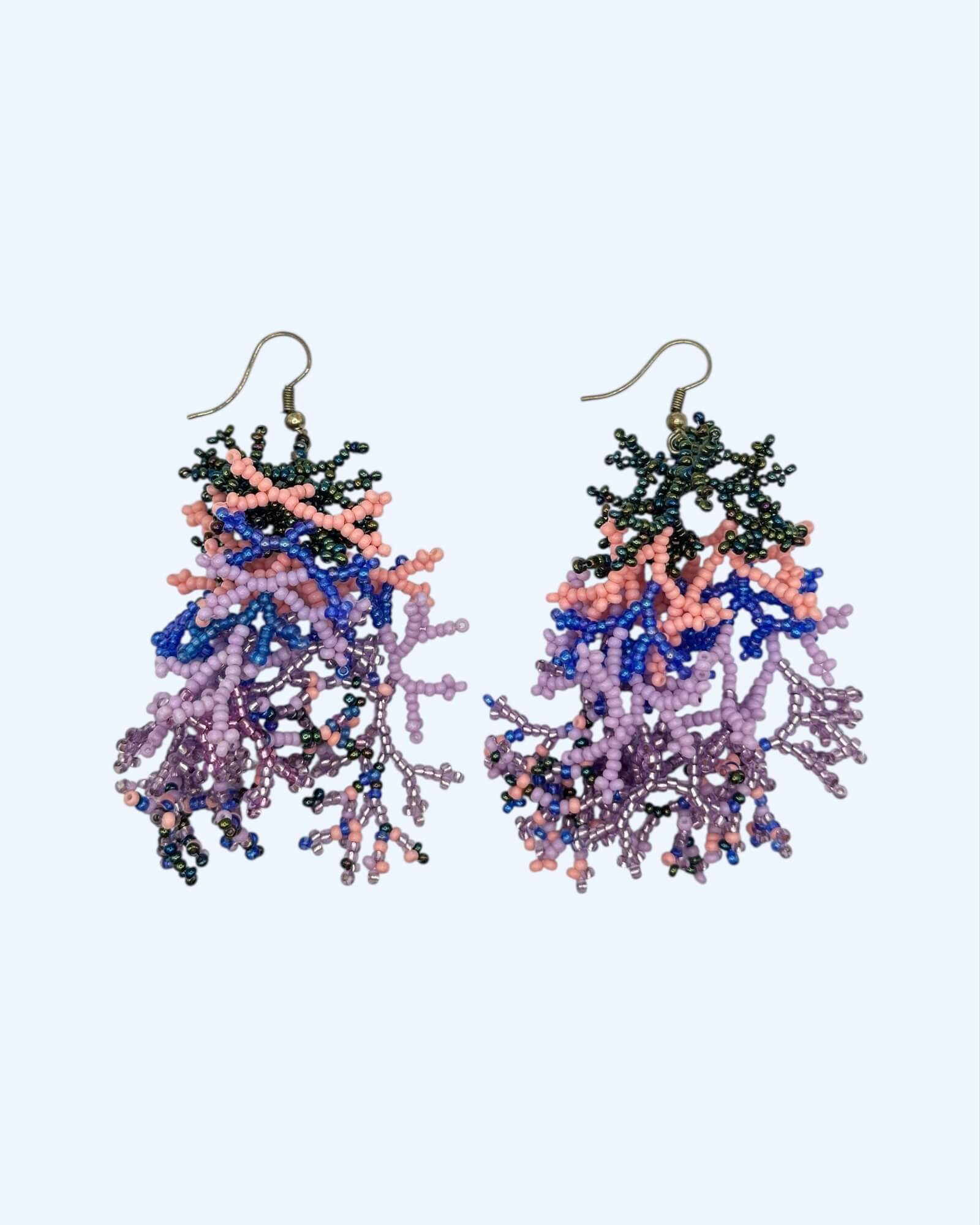 BRINCOS HANDMADE DE MISSANGAS EM FORMA DE CORAL