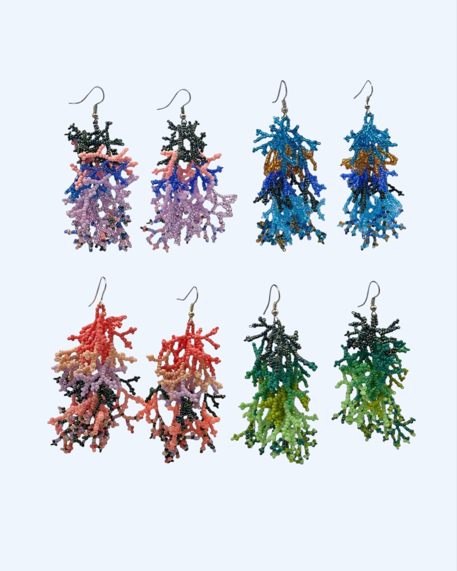 Com design inspirado em corais marinhos, estes brincos handmade de missangas são um statement leve e cool para quem ama cor, liberdade e looks com atitude. Disponíveis em quatro combinações.