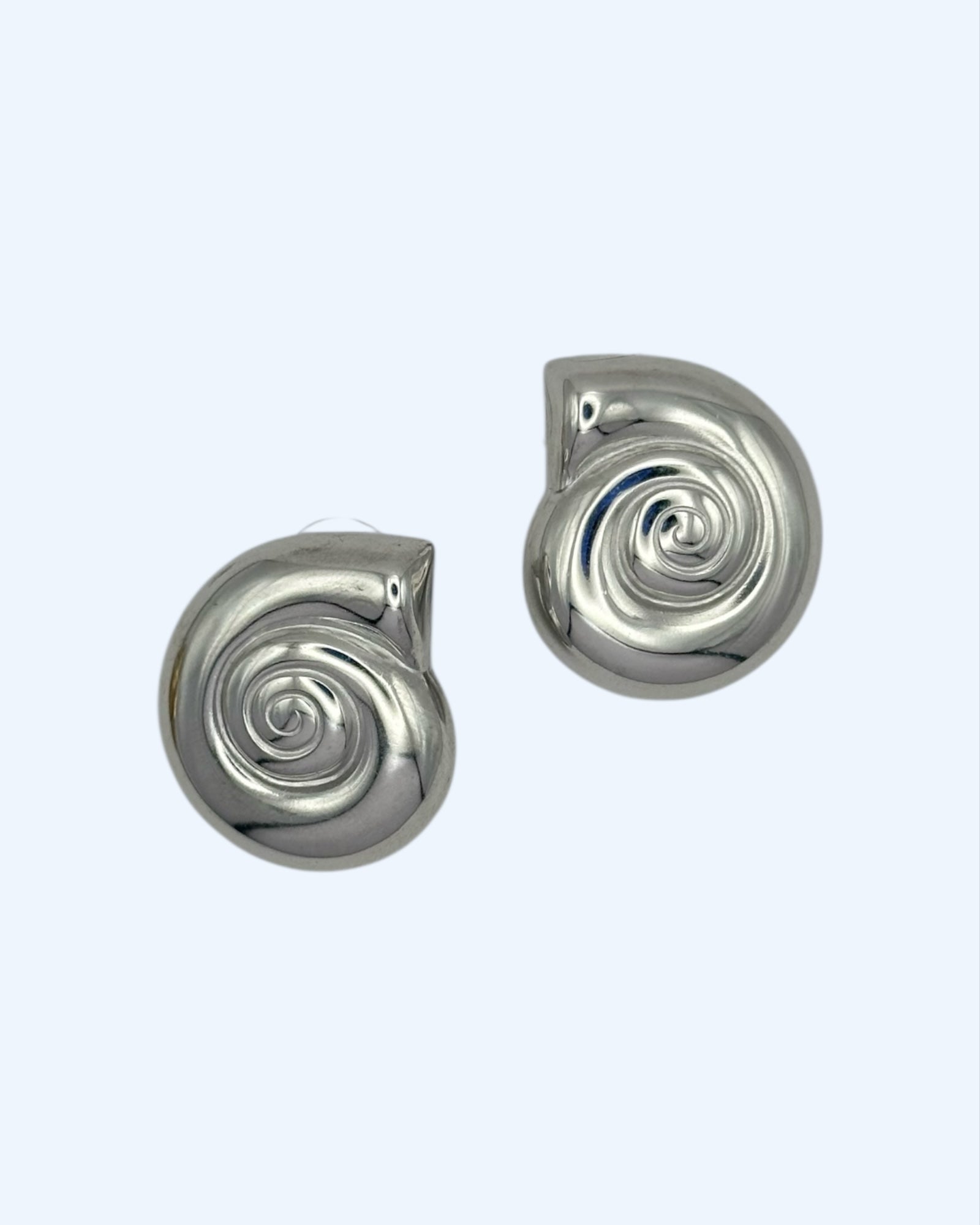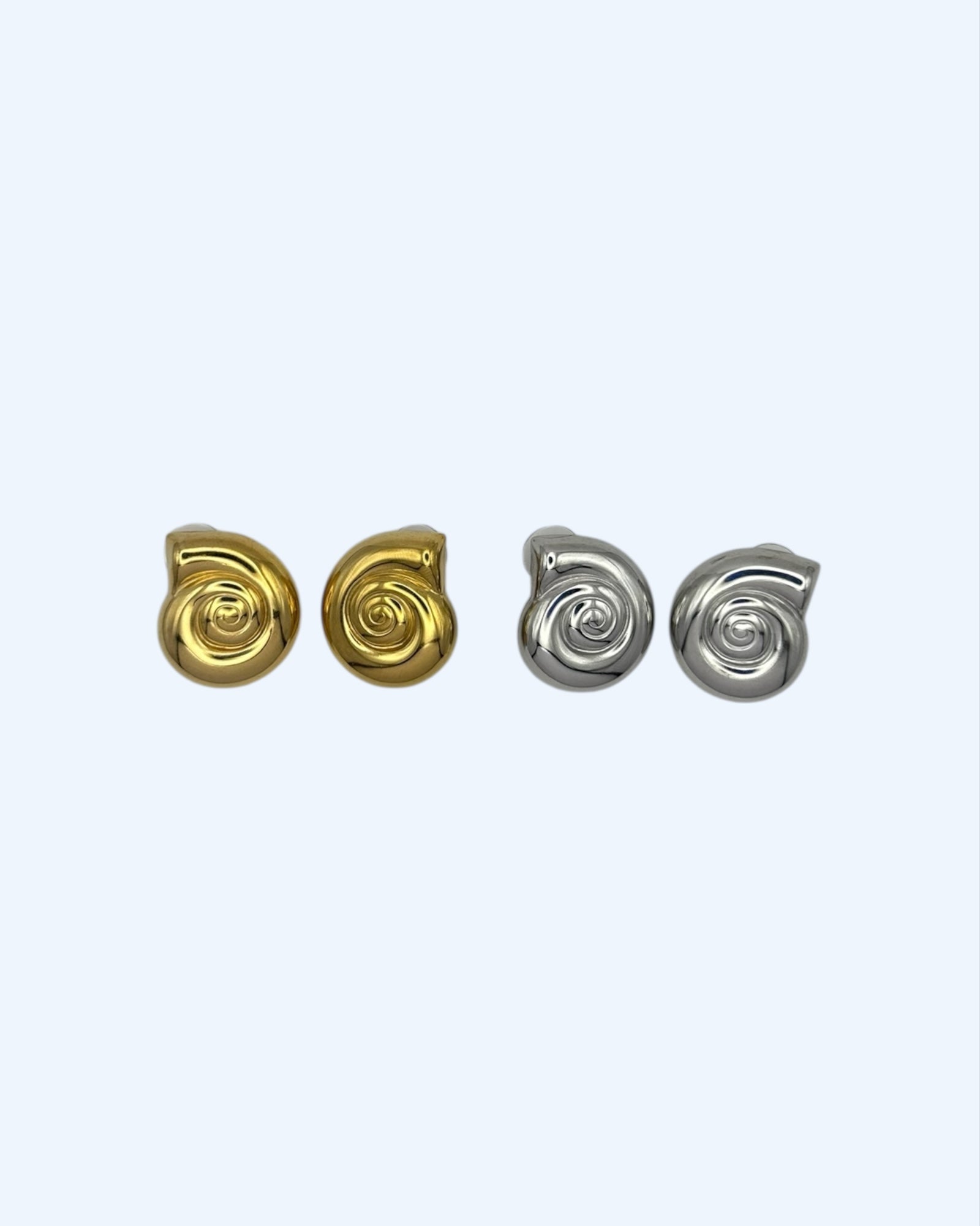 Brincos em formato búzio. Feitos em aço inoxidável, trazem uma energia boho e cool, onde só importa um verão com sol e mar.