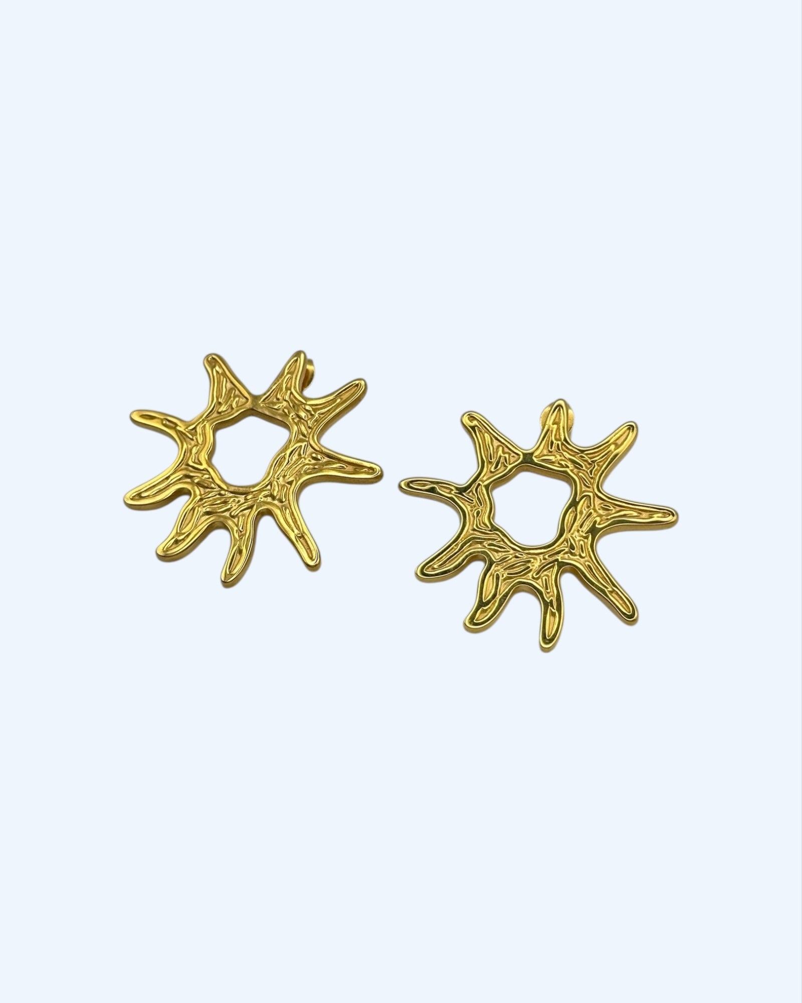 BRINCOS SOL ABSTRATO DOURADOS EM AÇO INOXIDÁVEL