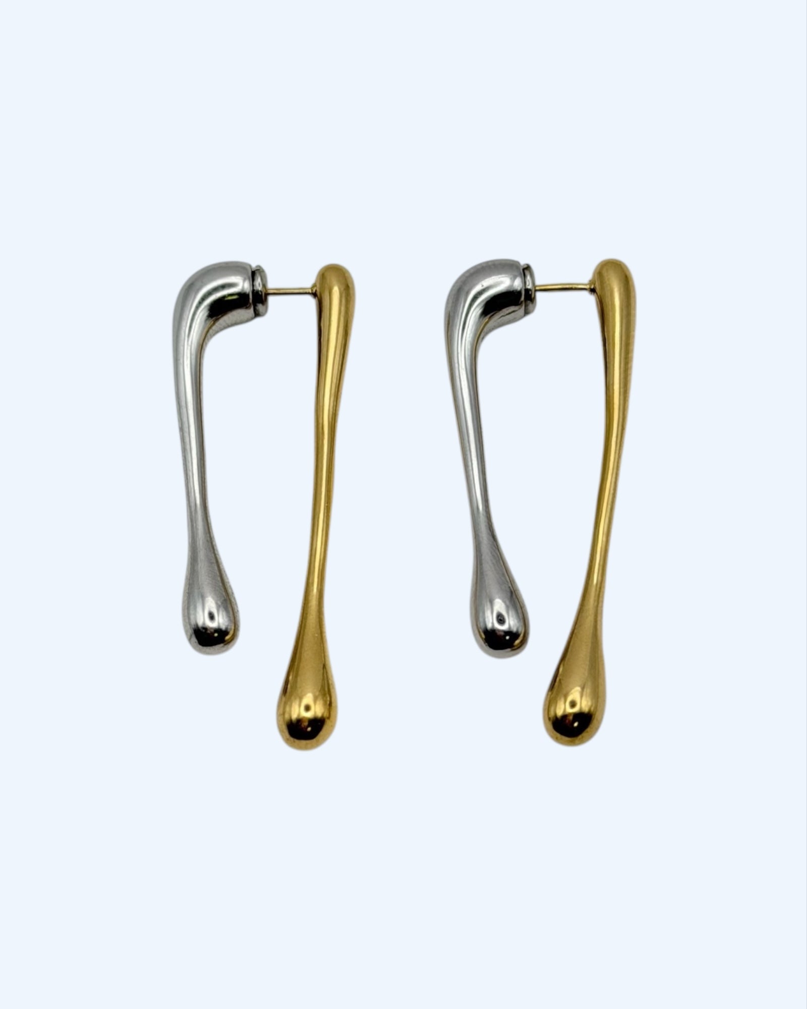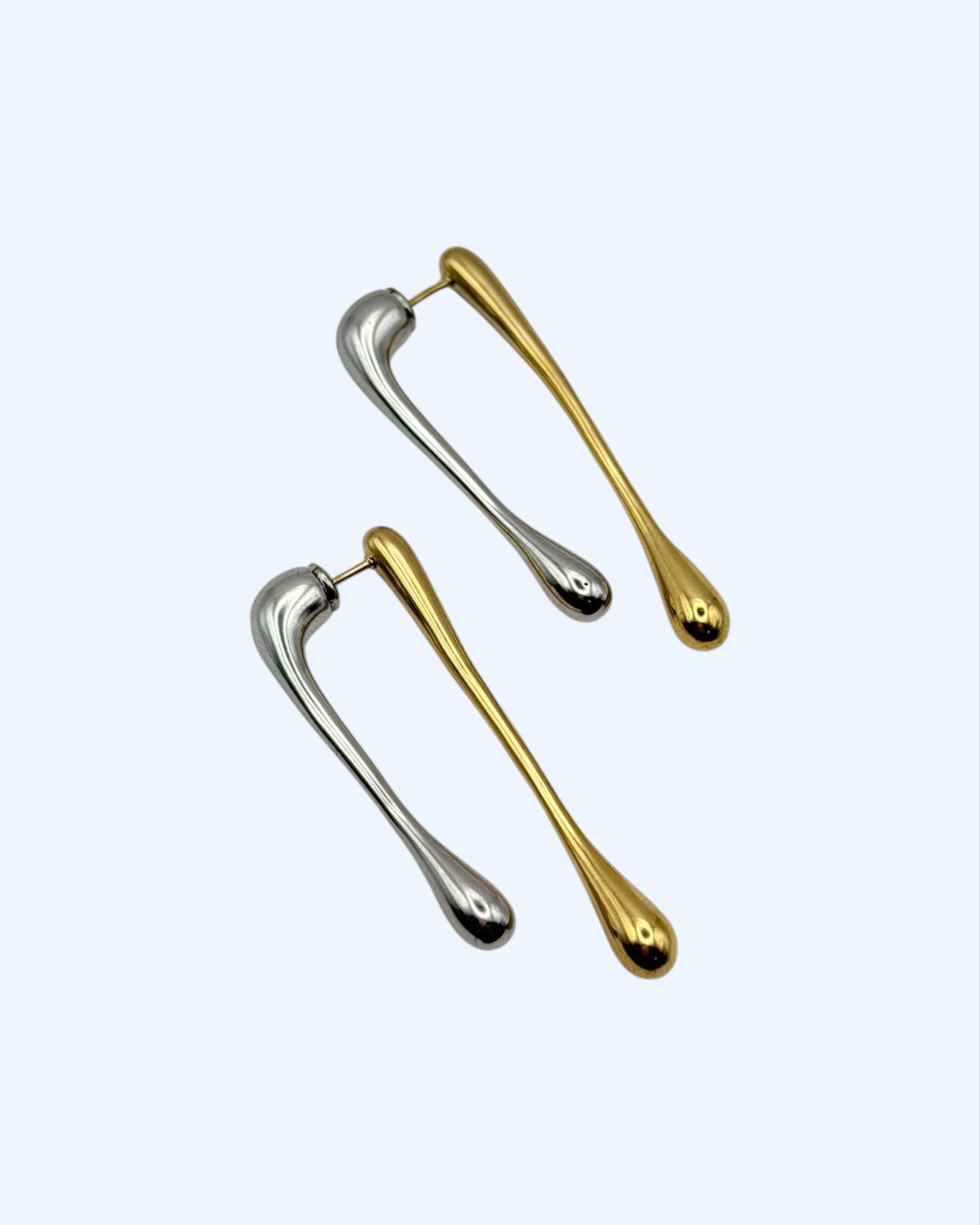 Brincos minimalistas em drop pulse dourada e prateada em aço inoxidável.