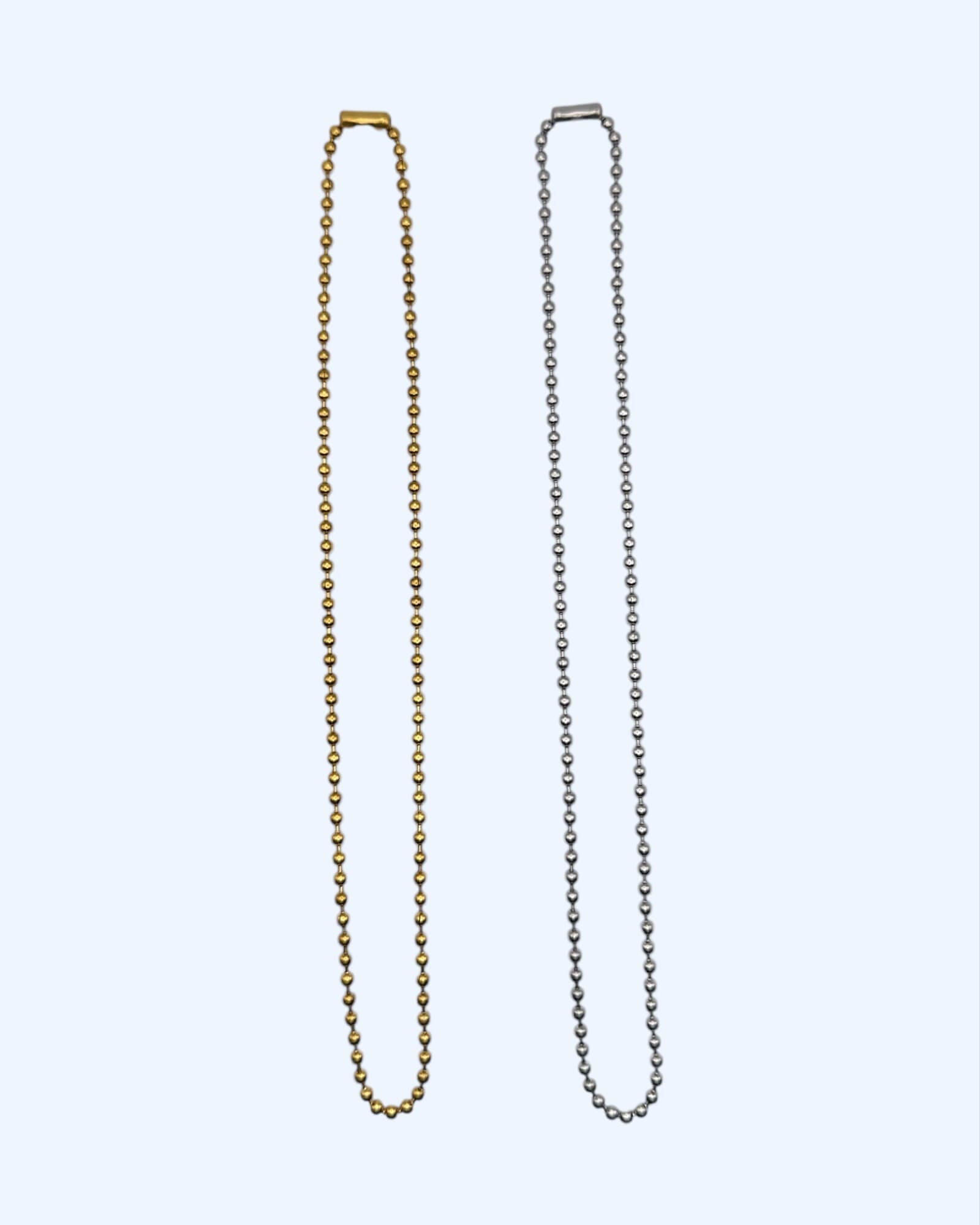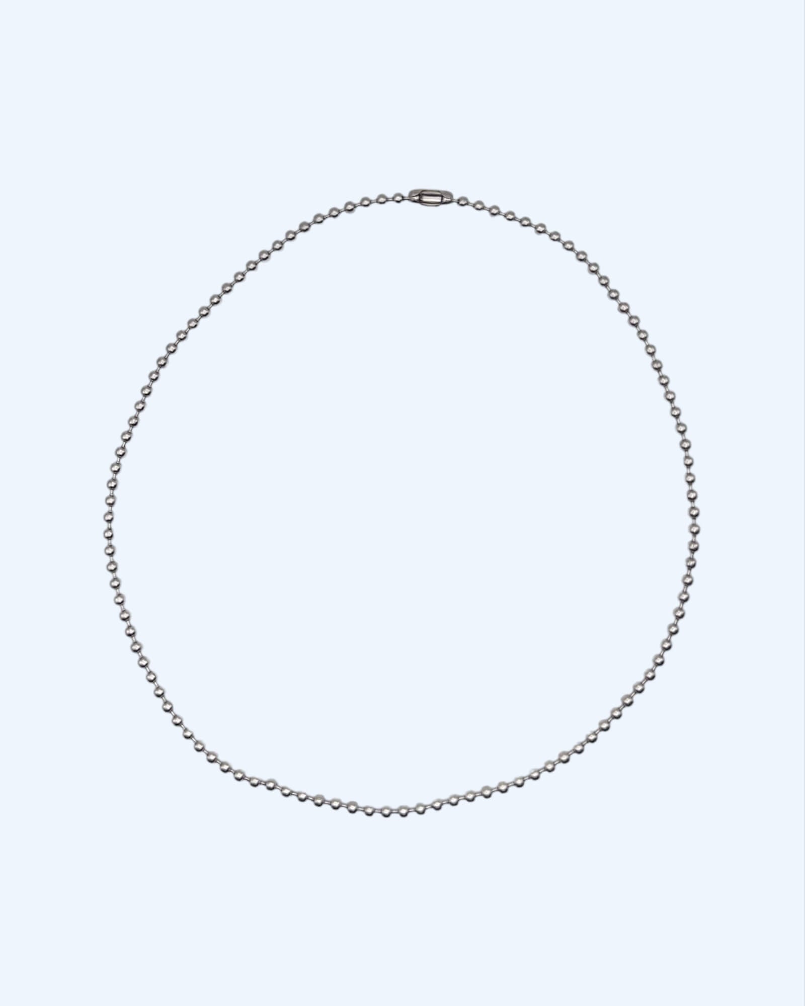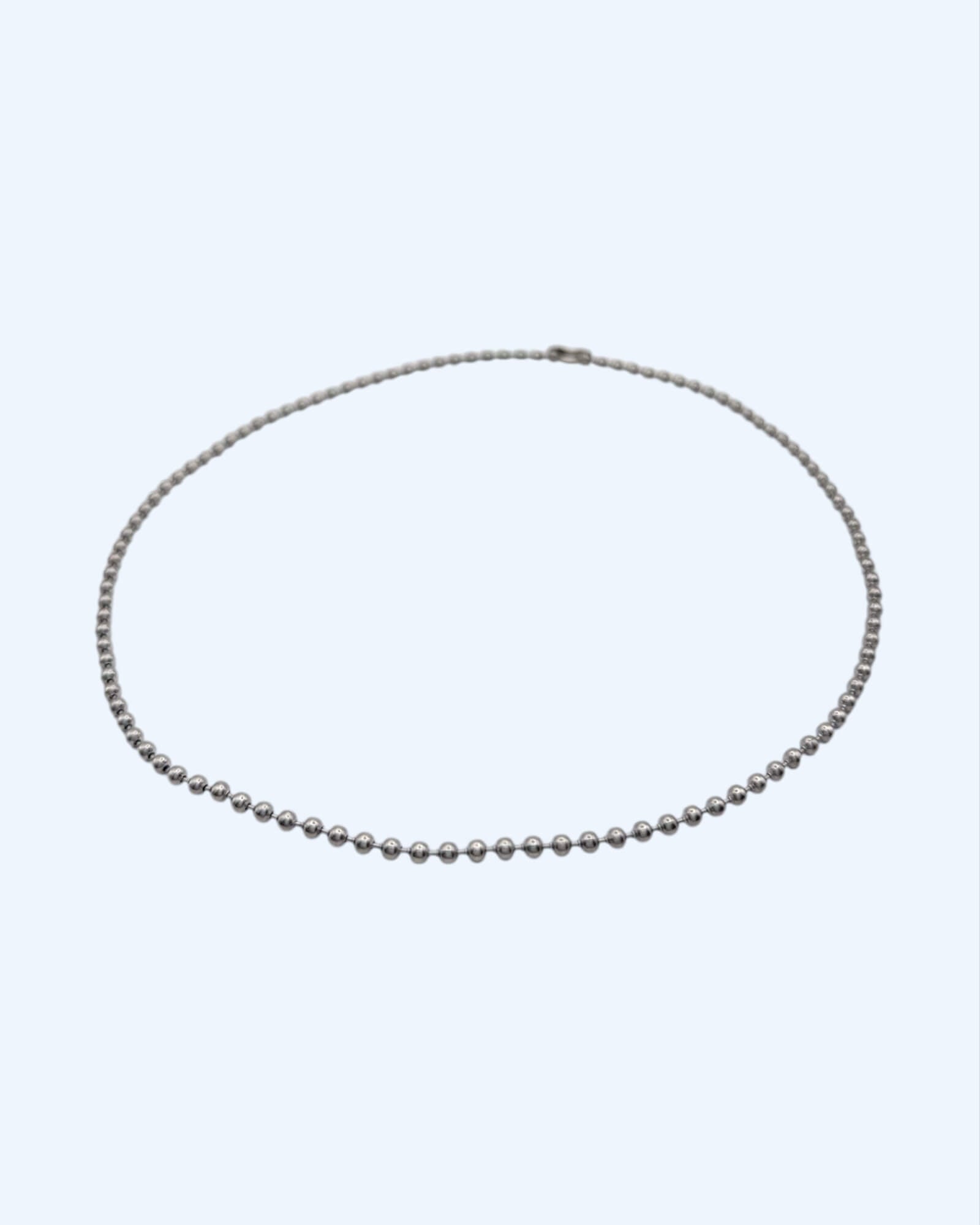 Colar em corrente fina com mini esferas em aço inoxidável, disponível em dourado e prateado. Um essencial leve, cool e versátil para usar a solo ou em mix com outros colares.