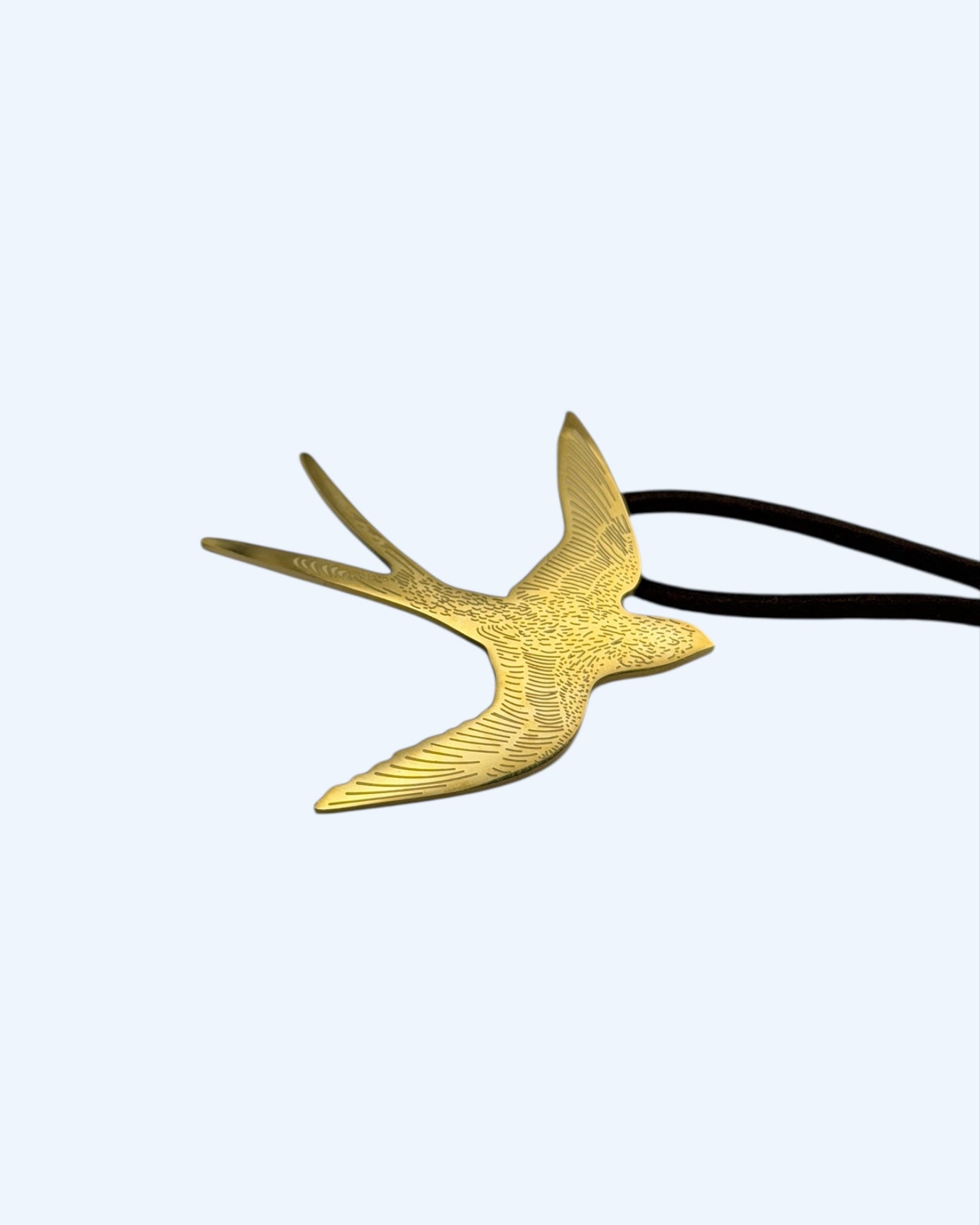 COLAR DE CAMURÇA COM PÁSSARO ANDORINHA EM AÇO INOXIDÁVEL