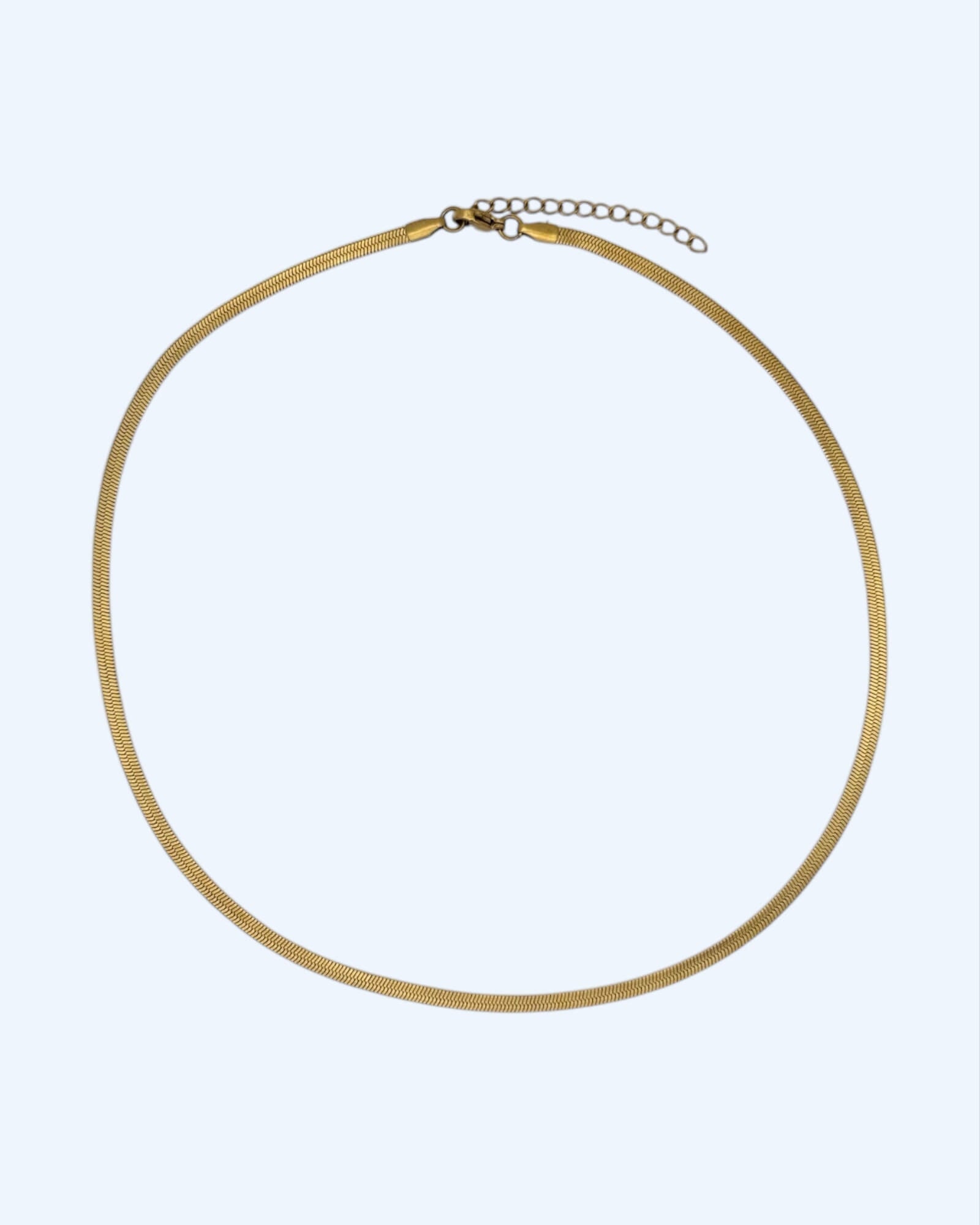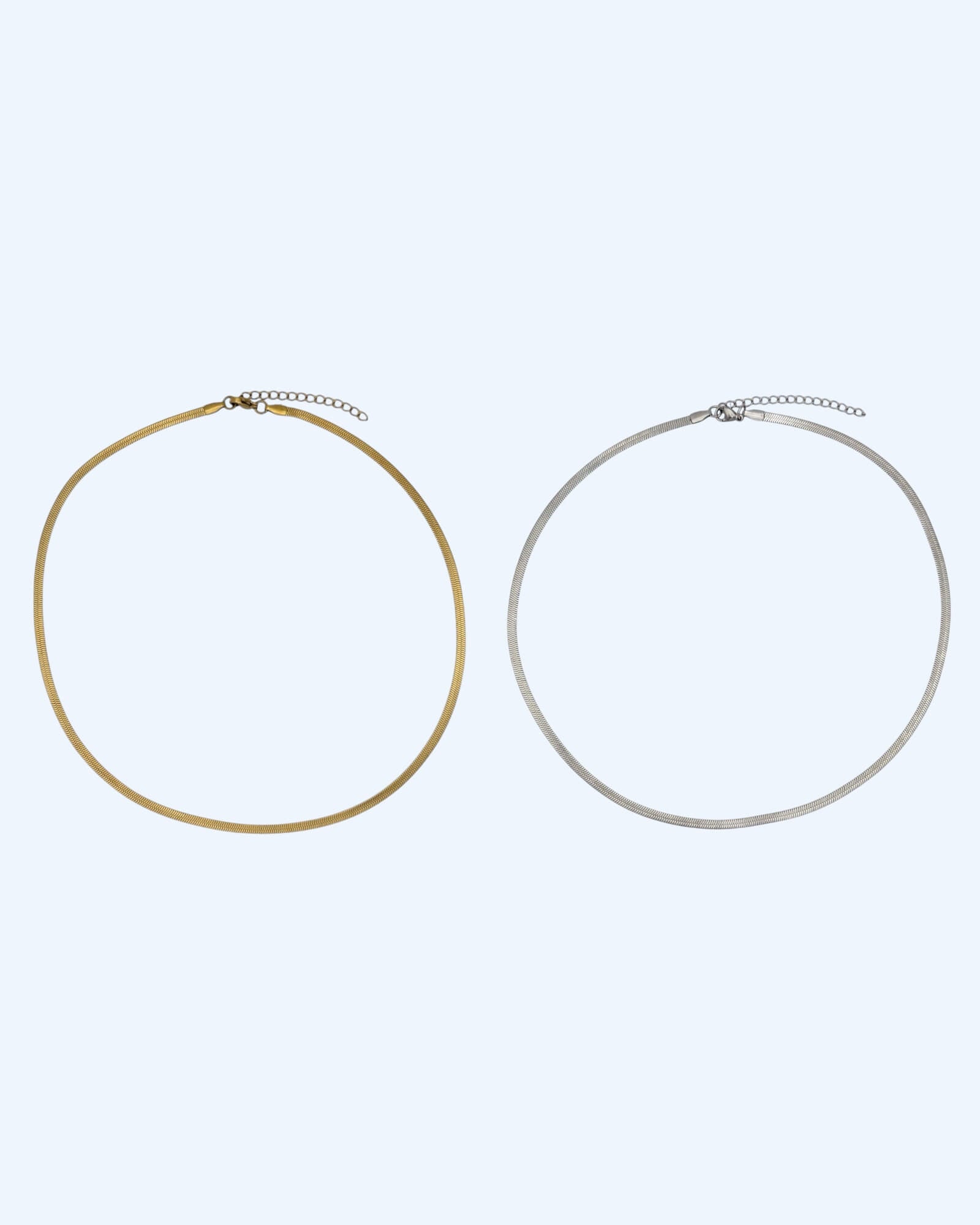O colar de malha fina em aço inoxidável, seja em dourado ou prateado, traz uma vibe effortless para qualquer look. Perfeito sozinho, arrasa em layering.