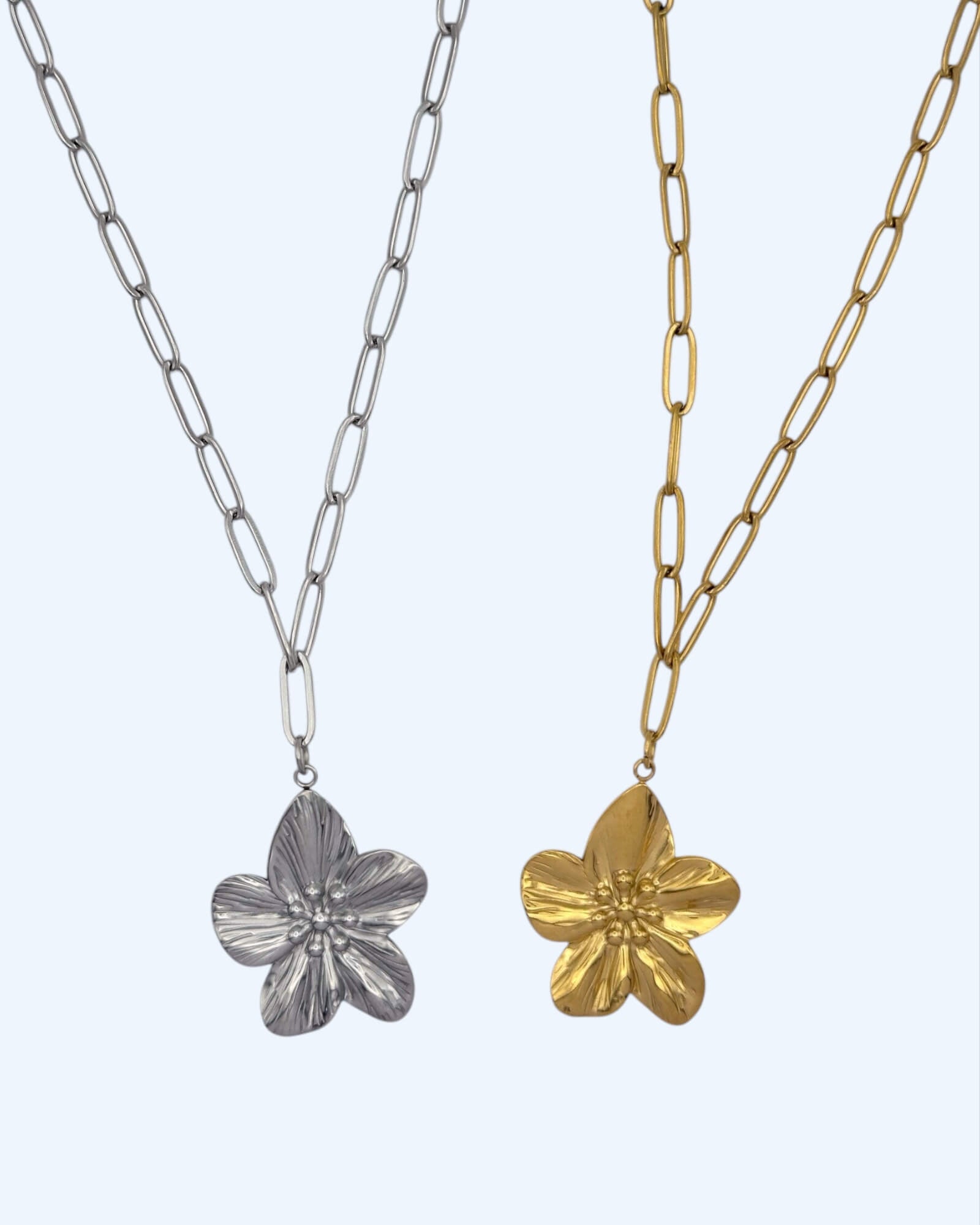 COLAR EM AÇO COM FLOR EM DOURADO OU PRATEADO