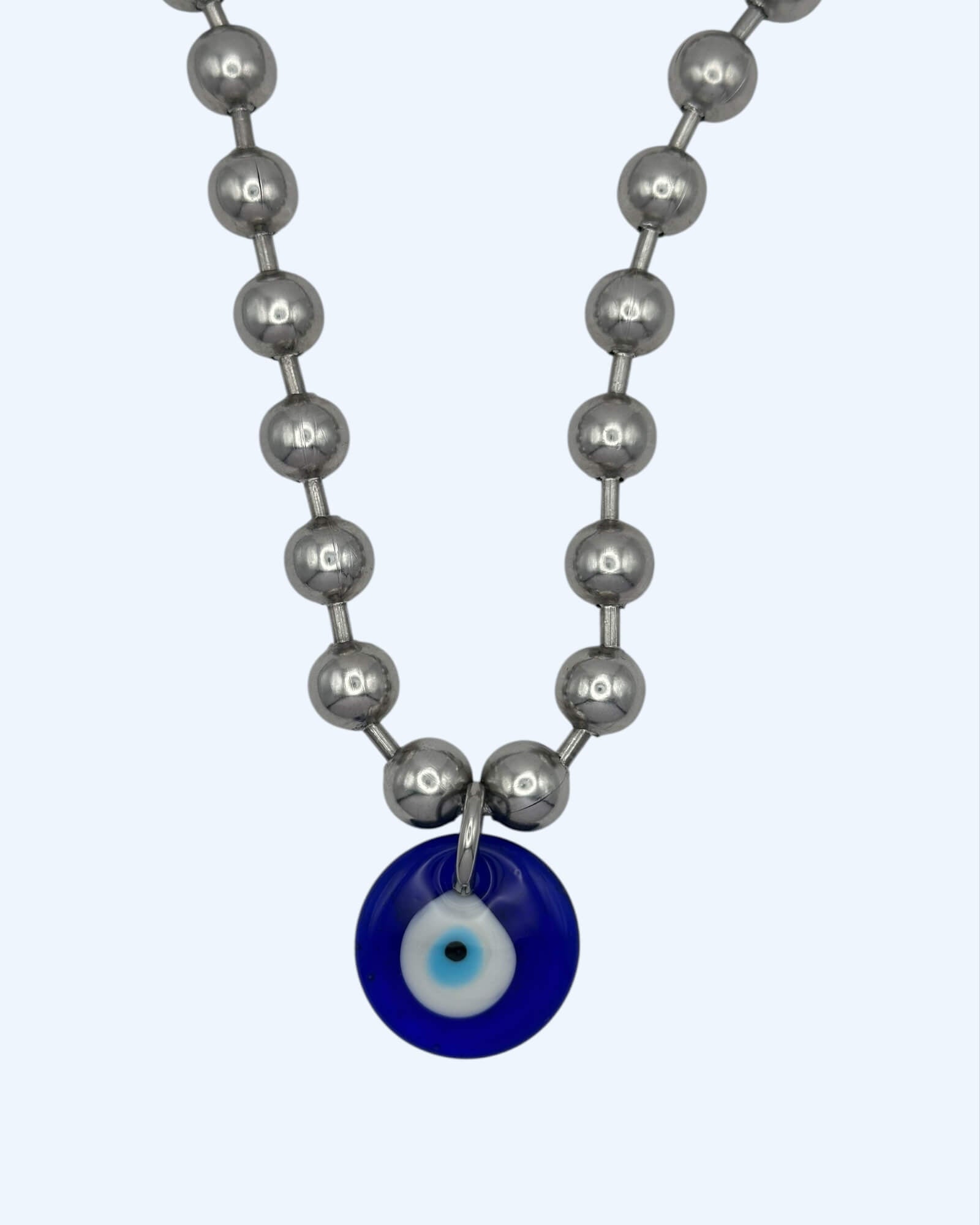 COLAR EM AÇO INOXIDÁVEL COM MEDALHÃO OLHO GREGO
