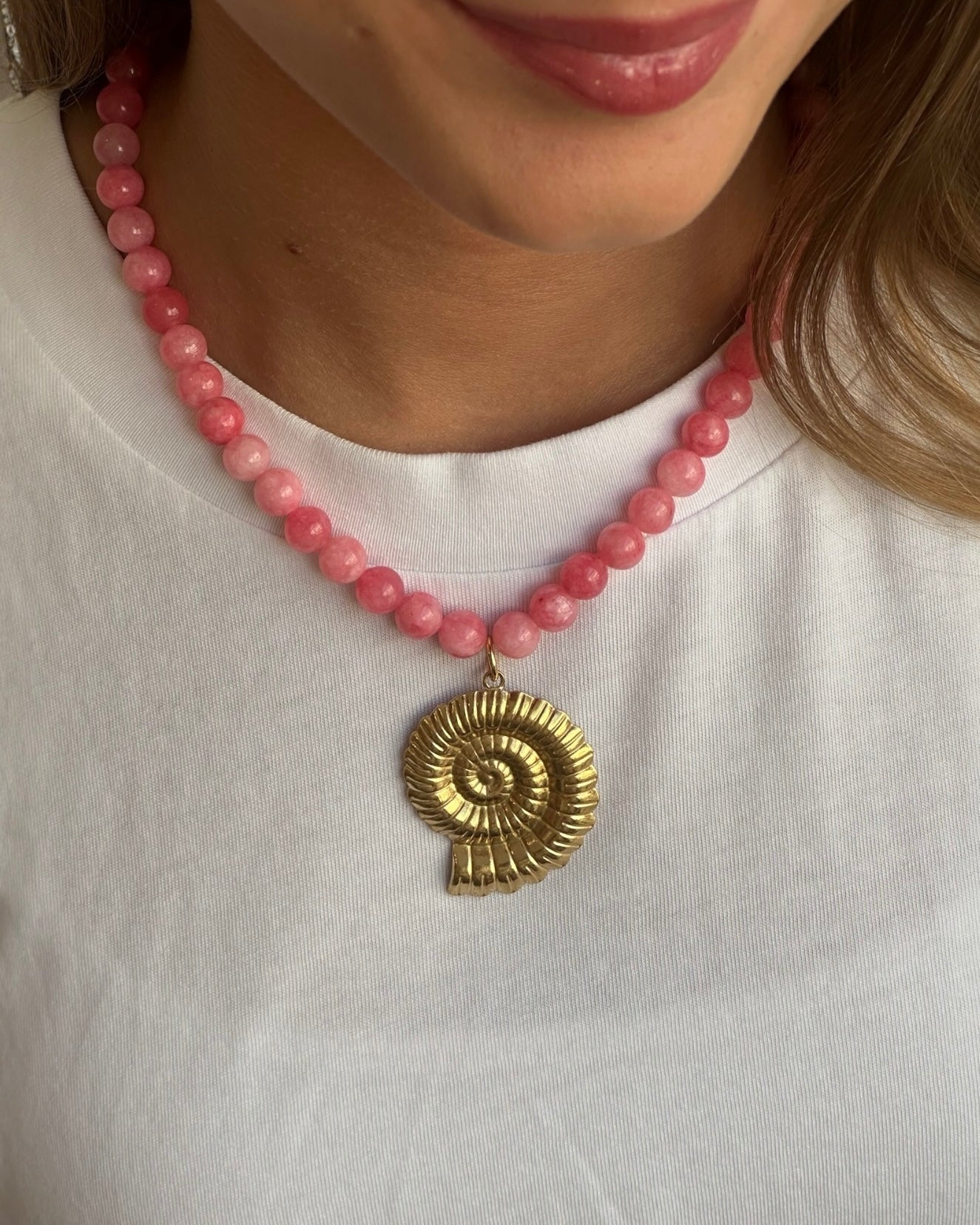 Colar feito á mão com pedras naturais. Pendente e terminações em Aço Inoxidável.