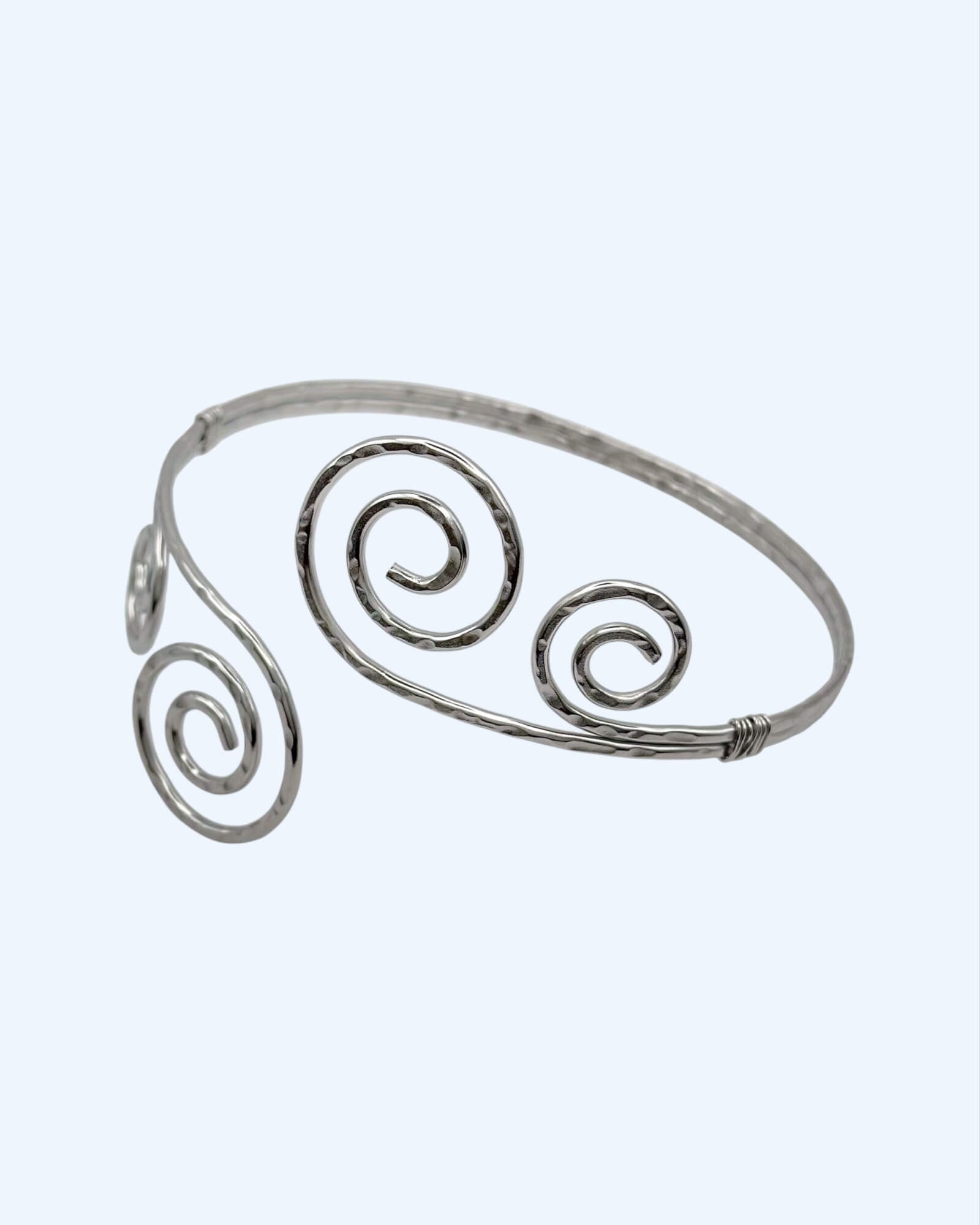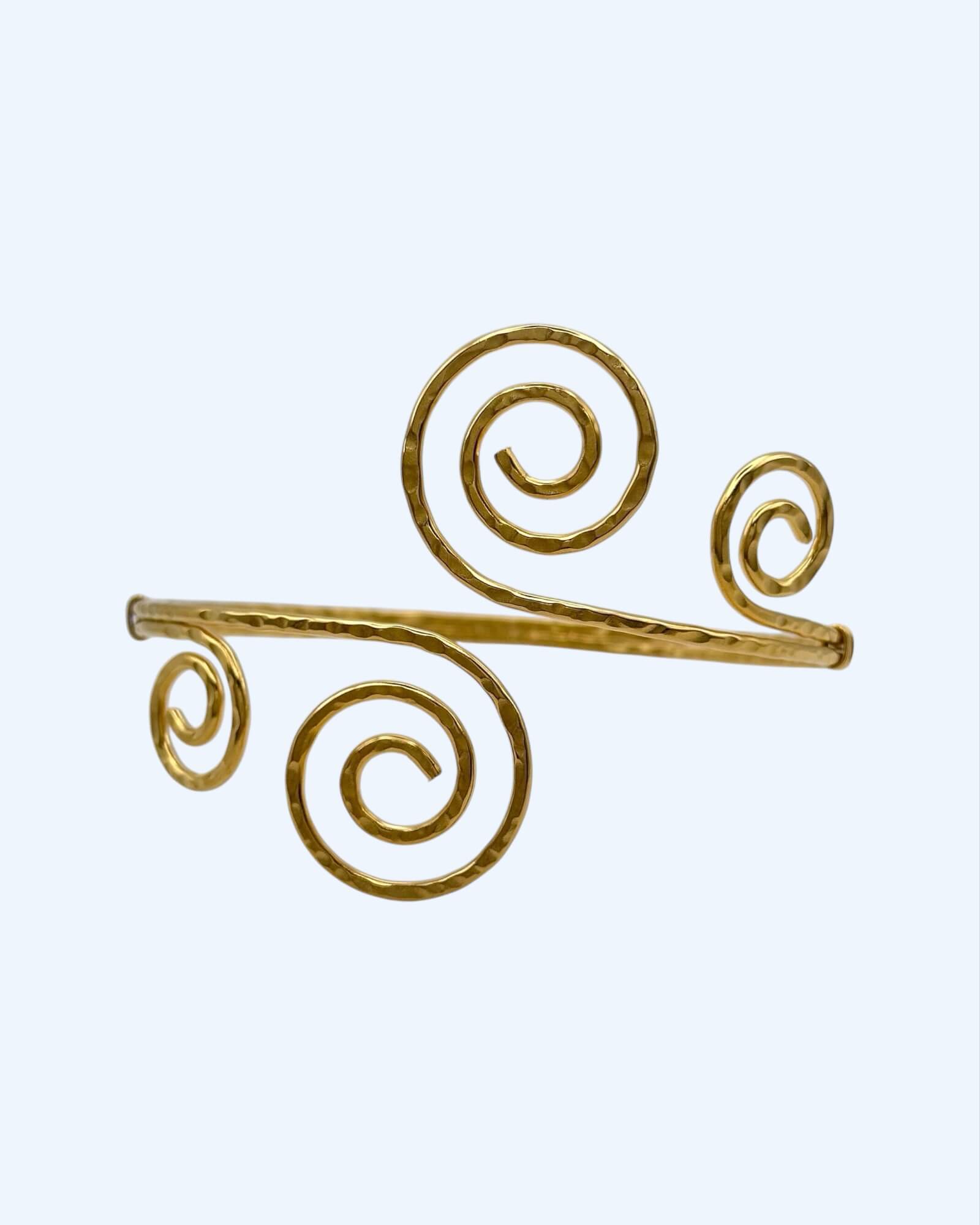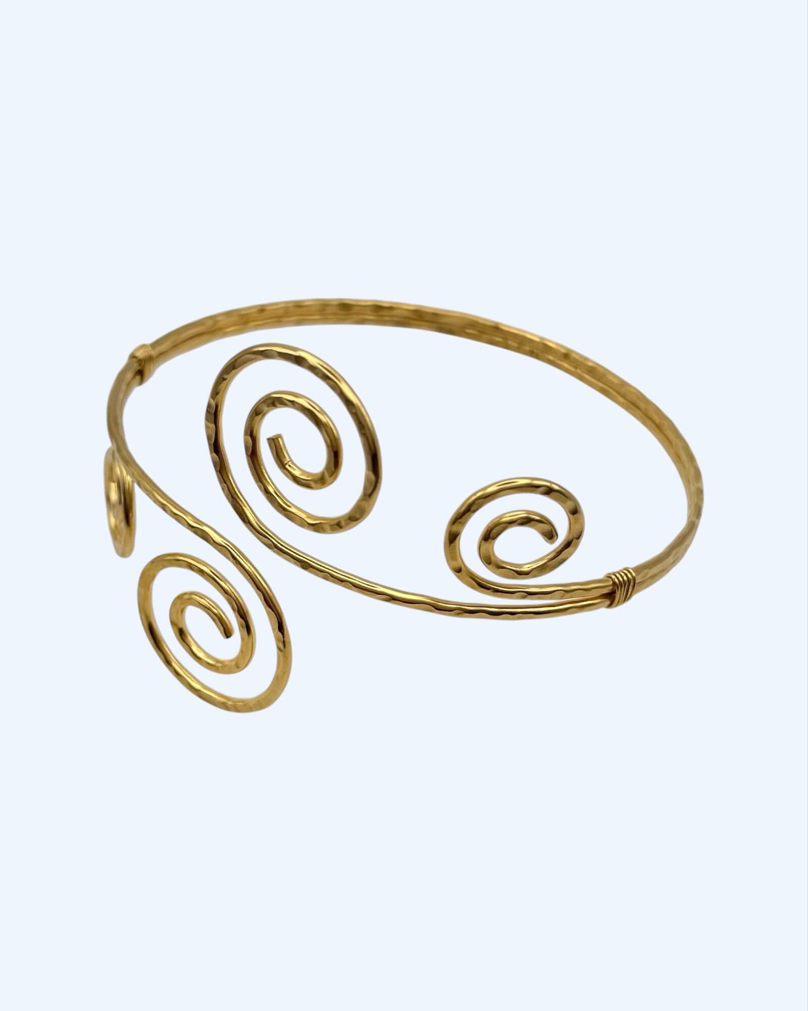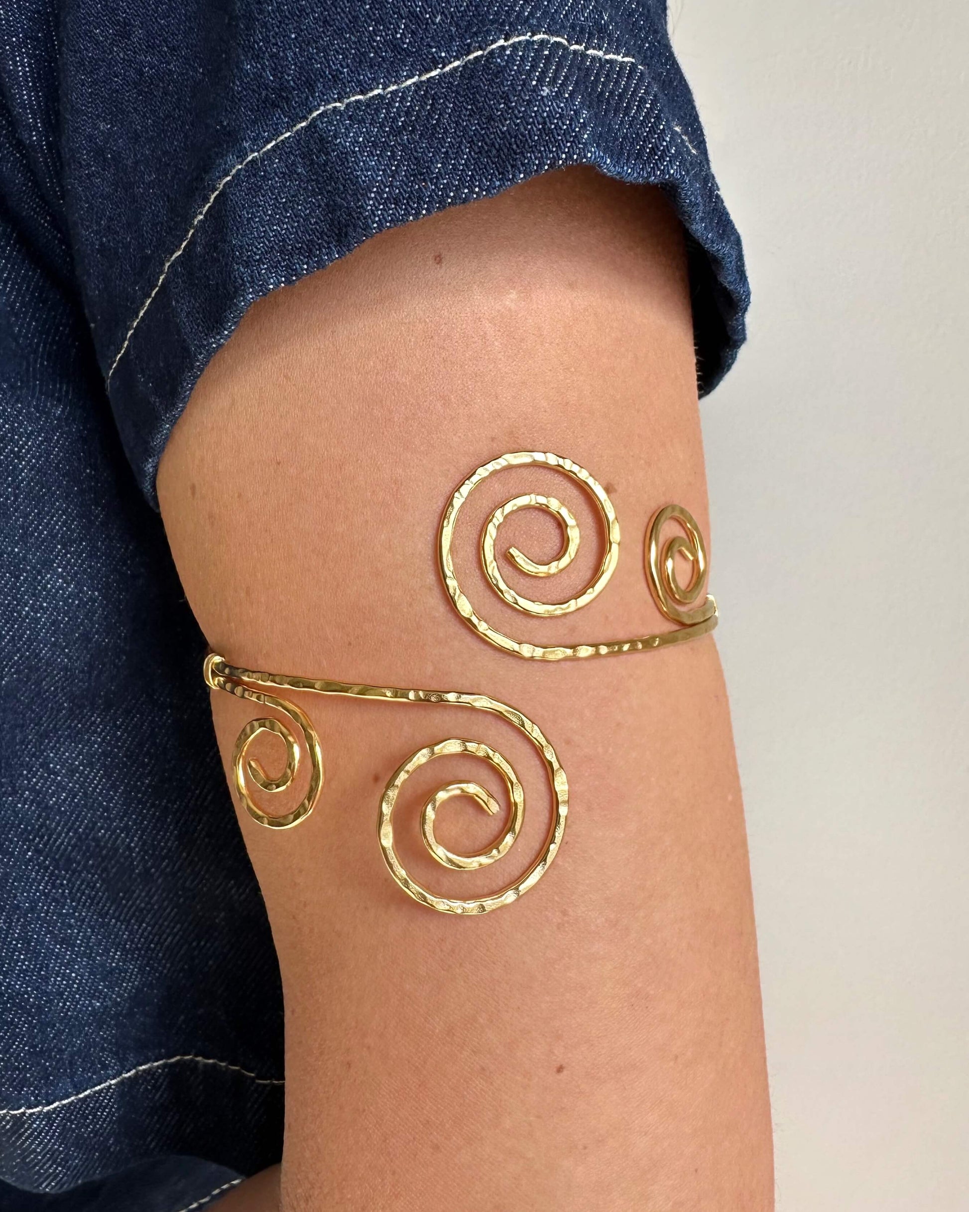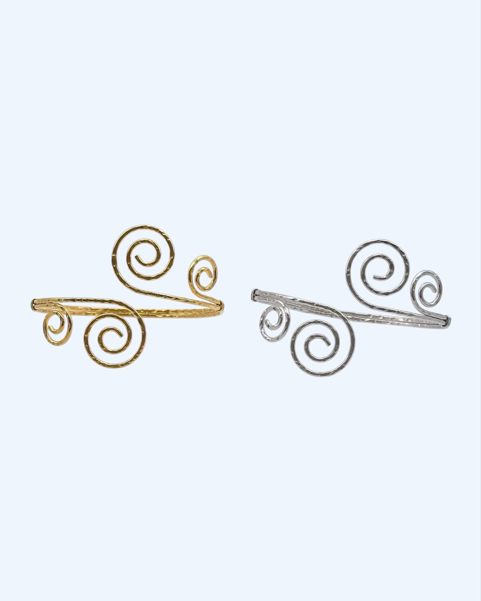 Com uma vibe tribal irresistível, estas pulseiras de antebraço são em aço inoxidável e vão ser um quê no teu look. São de tamanho ajustável e estão disponíveis em dourado e prateado.
