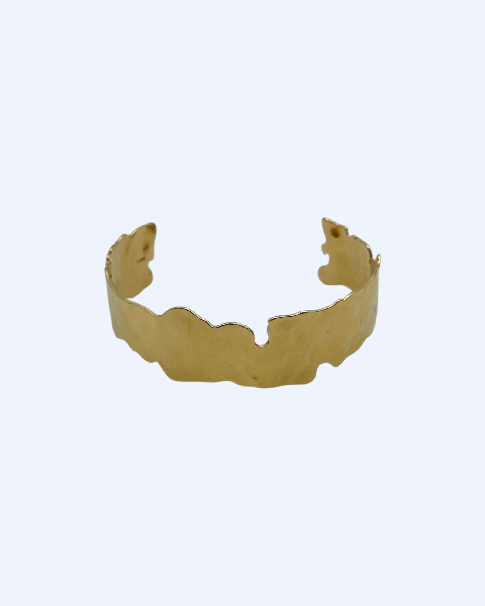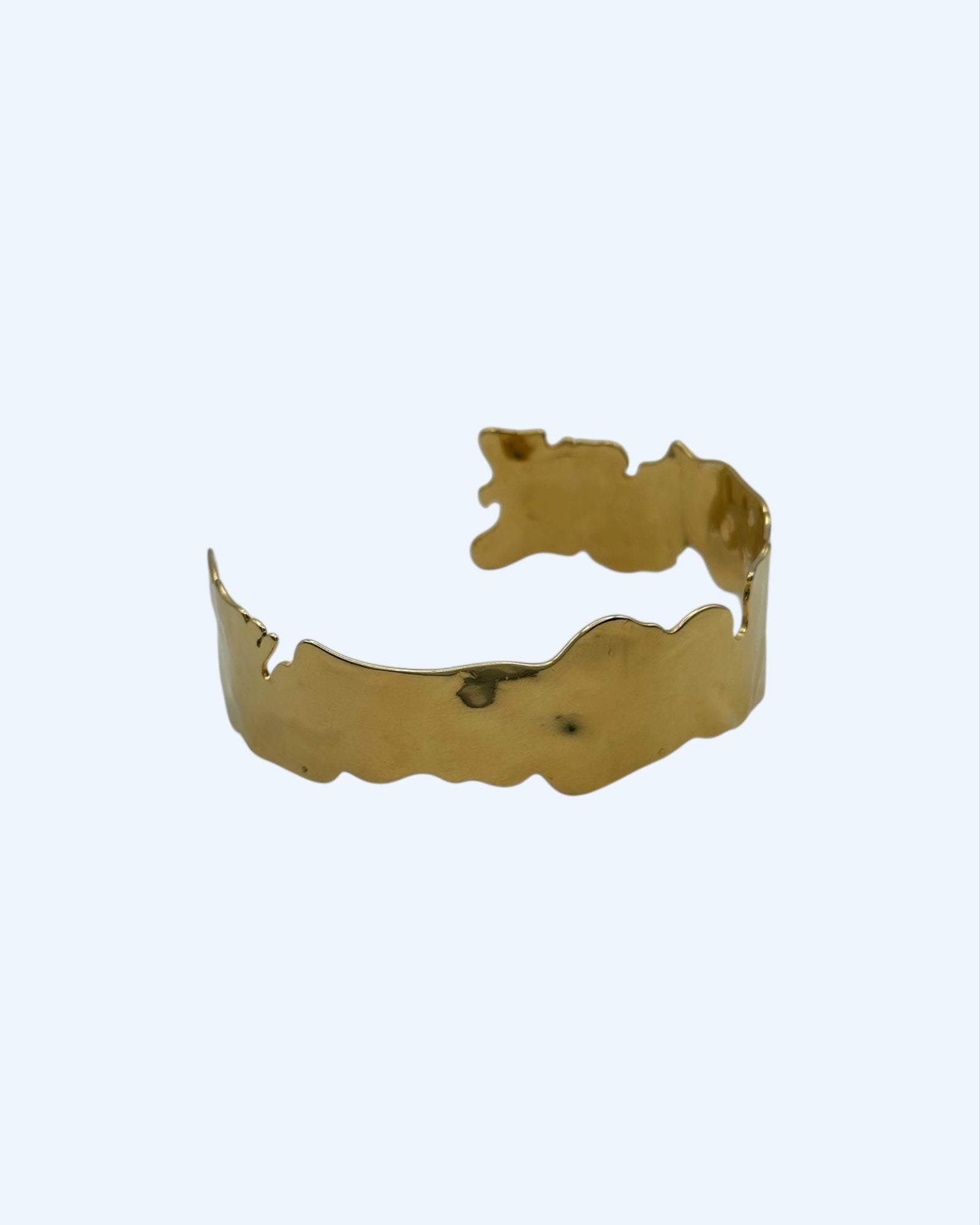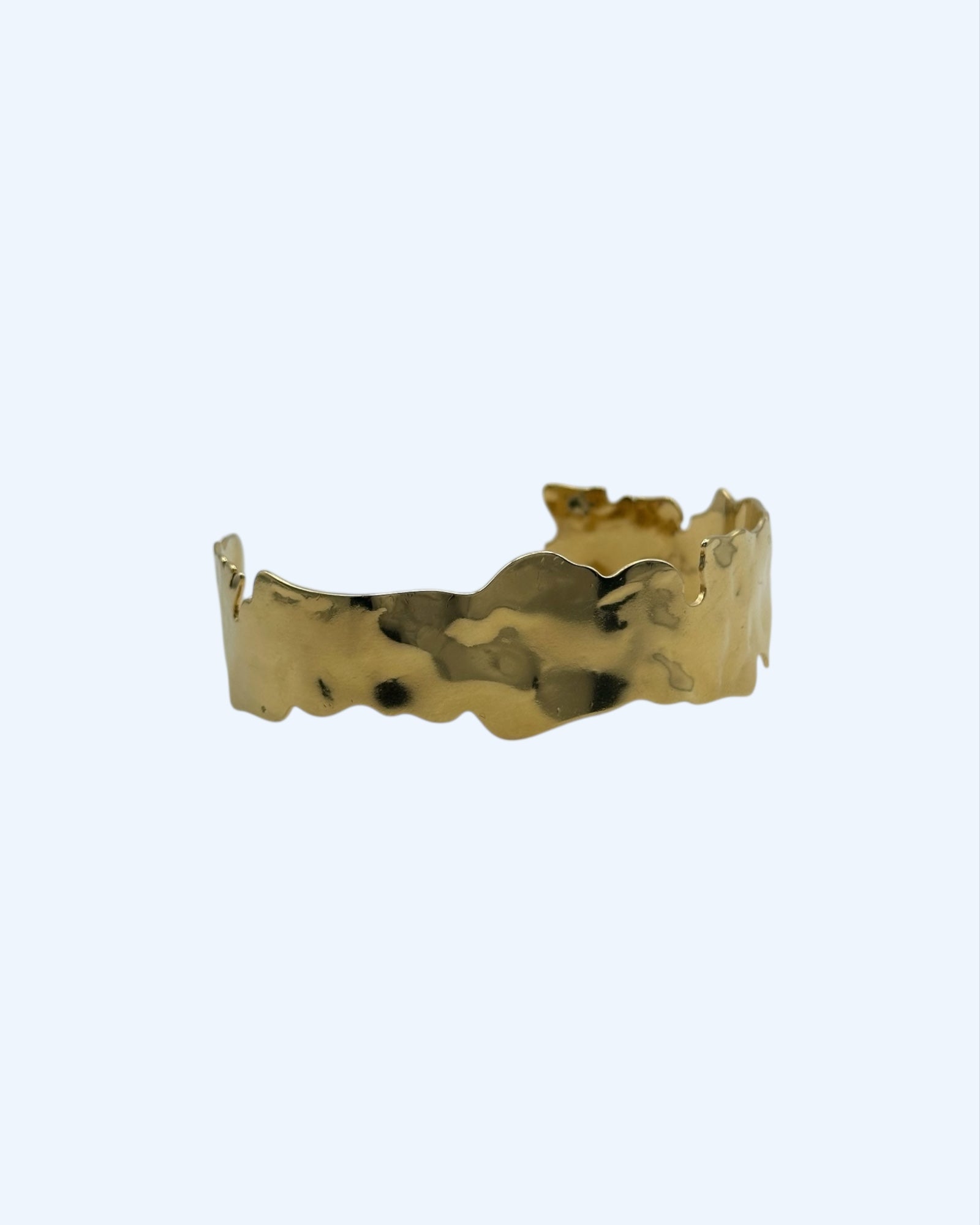 Com contornos fluidos e textura, esta pulseira dourada em aço inoxidável ajustável é super leve e a expressão máxima do cool com um toque de escultural.