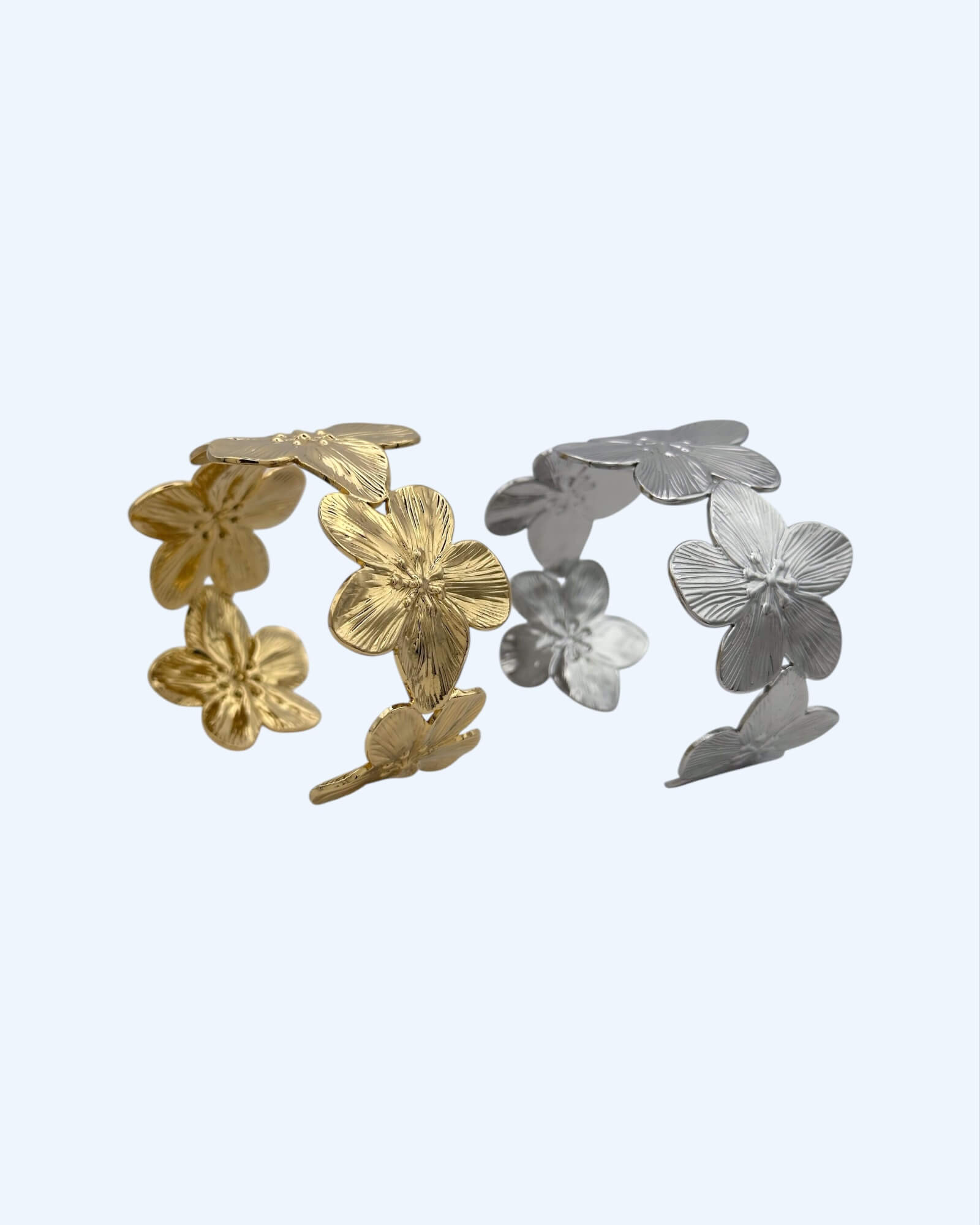 PULSEIRA RÍGIDA FLORES DOURADA OU PRATEADA EM AÇO