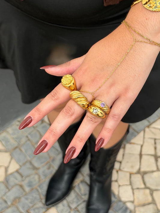 ANEL DOURADO CURVAS ARMADURA EM AÇO INOXIDÁVEL